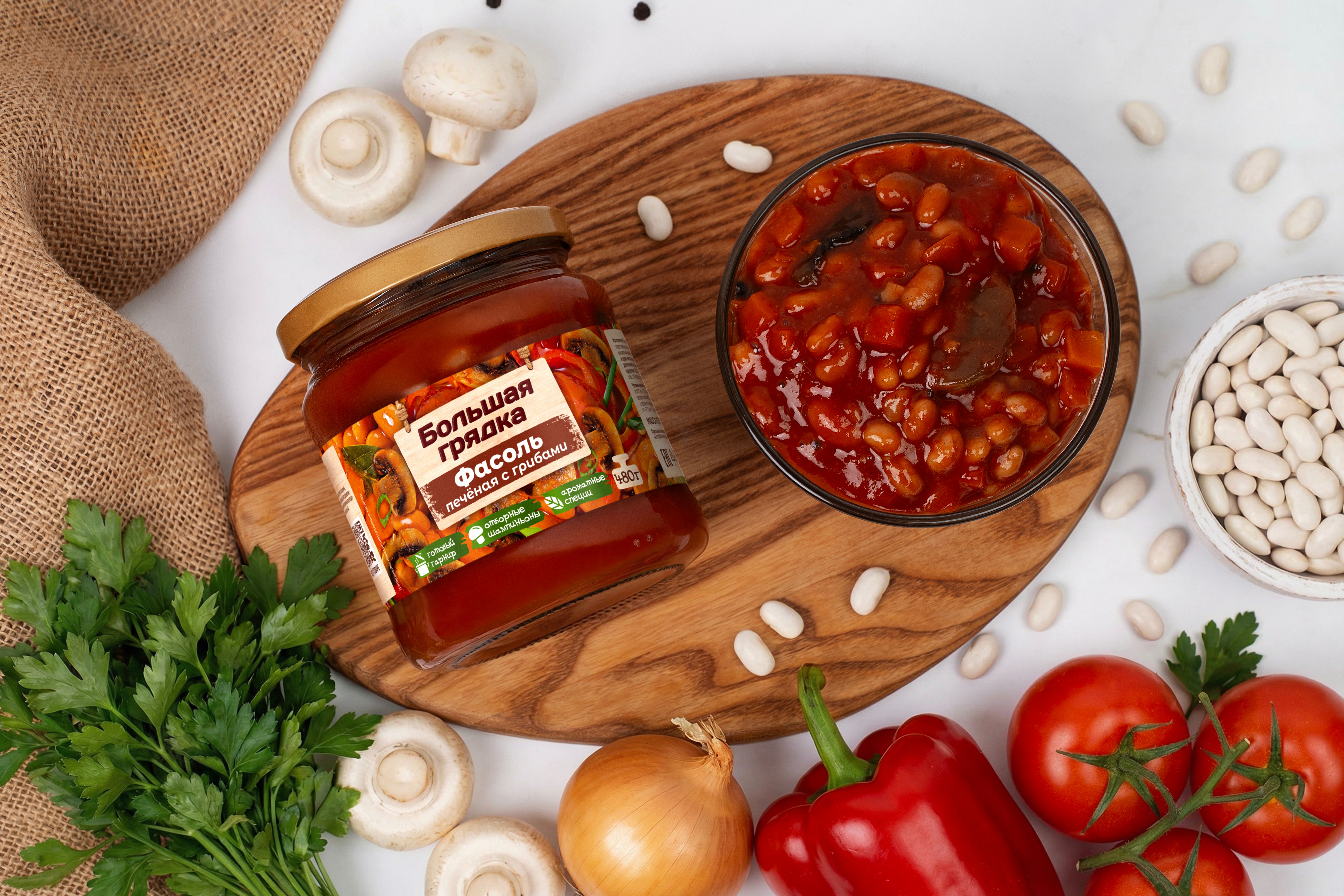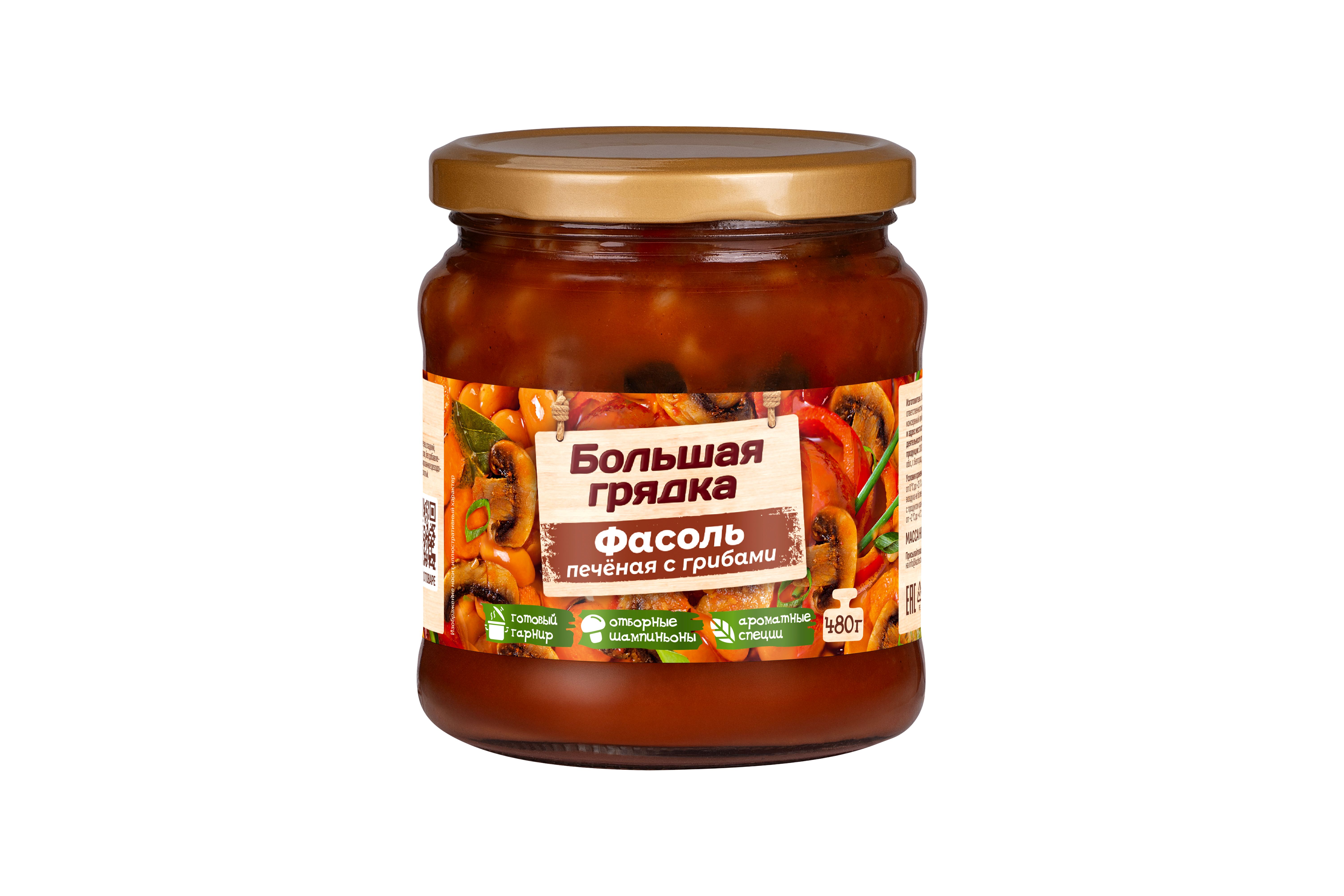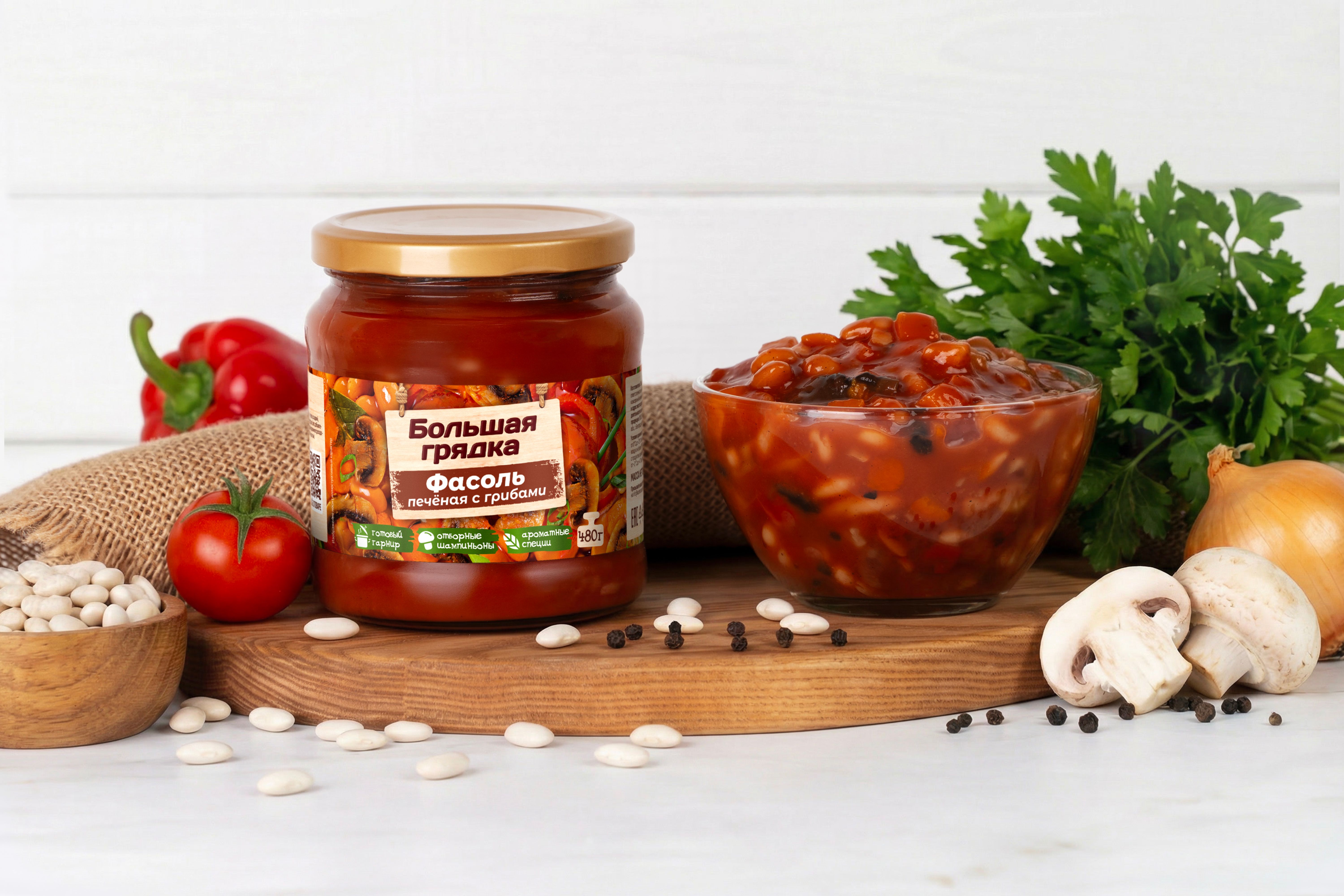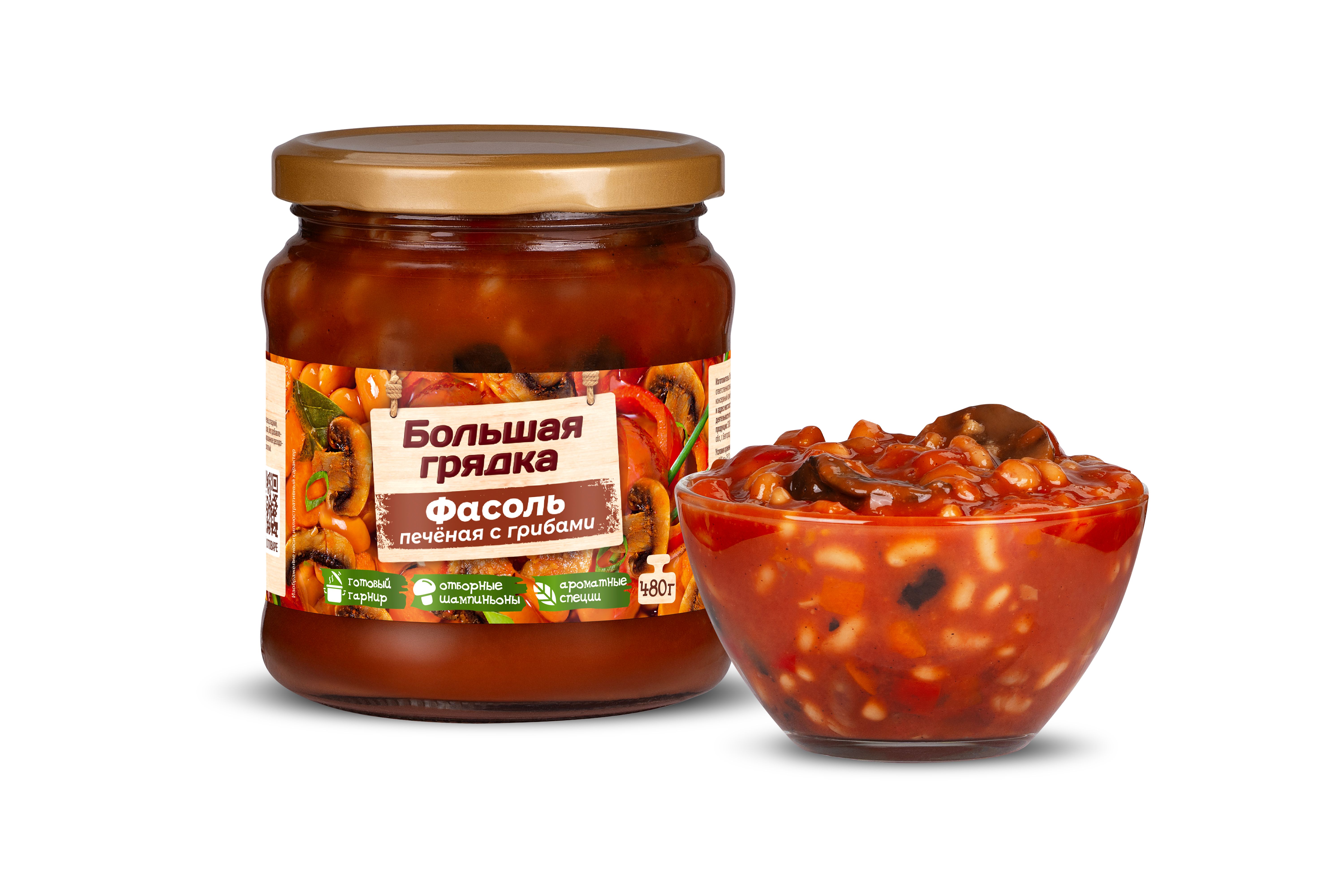 Фасоль печеная с грибами ТМ "Большая грядка" — это консервы из зерновой фасоли, вкусная и питательная закуска. Фасоль богата белком и клетчаткой, а отборные овощи (мягкая фасоль белая лопатка, морковь, перец сладкий, чеснок) в ее составе витаминами и микроэлементами, шампиньоны витаминами группы B, D, калием, фосфором и селеном. Продукт имеет натуральный чистый состав без консервантов и усилителей вкуса и подходит для людей, придерживающихся правильного питания. Вы можете насладиться этой сытной закуской, подав ее в качестве гарнира к основному блюду, или создать целостное блюдо, дополнив ее другими ингредиентами по вашему вкусу. Благодаря свежим региональным ингредиентам и натуральной рецептуре продукция “Большая грядка” имеет особый домашний вкус, близкий и понятный каждому! "Большая грядка" - многообразие натуральных вкусов!