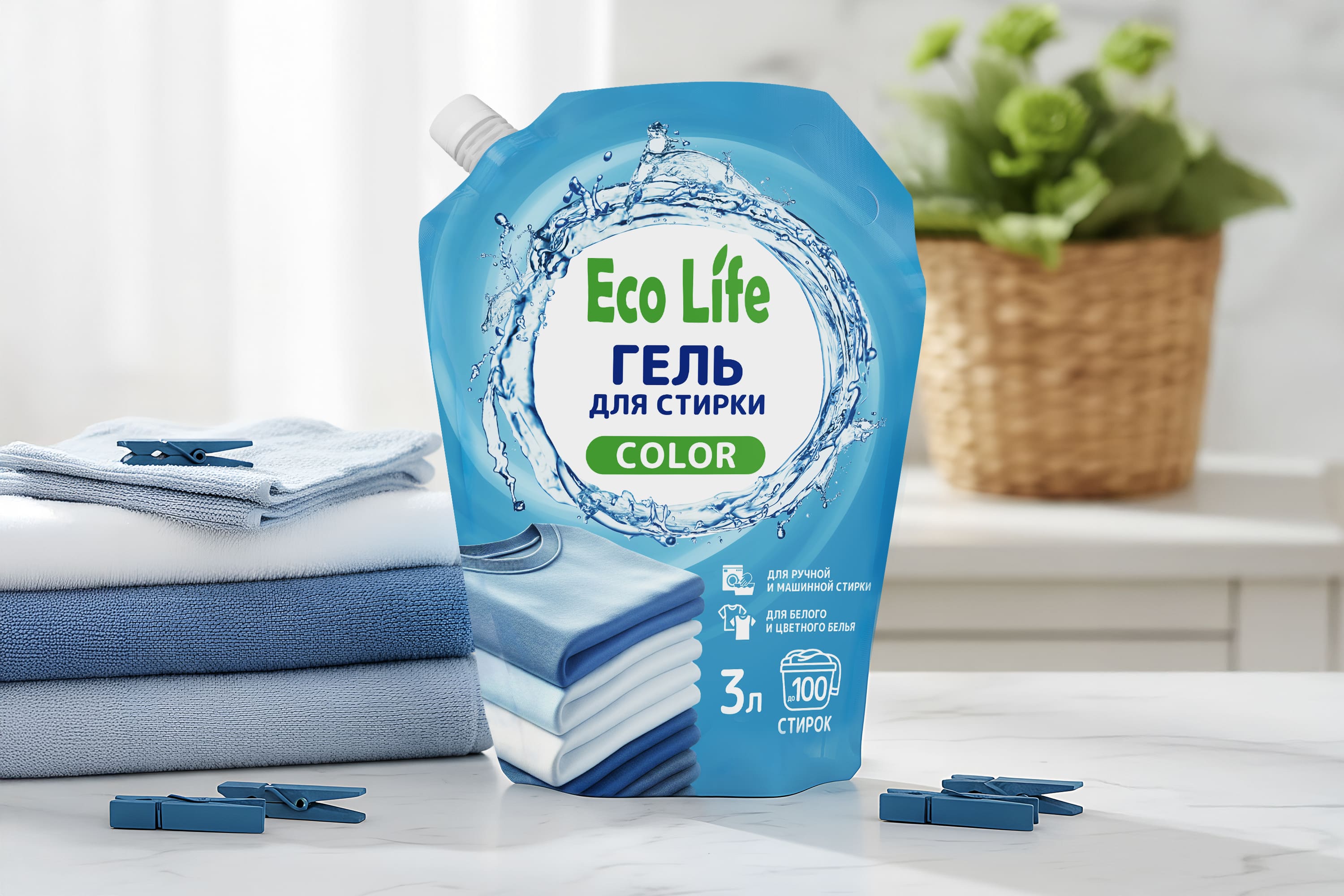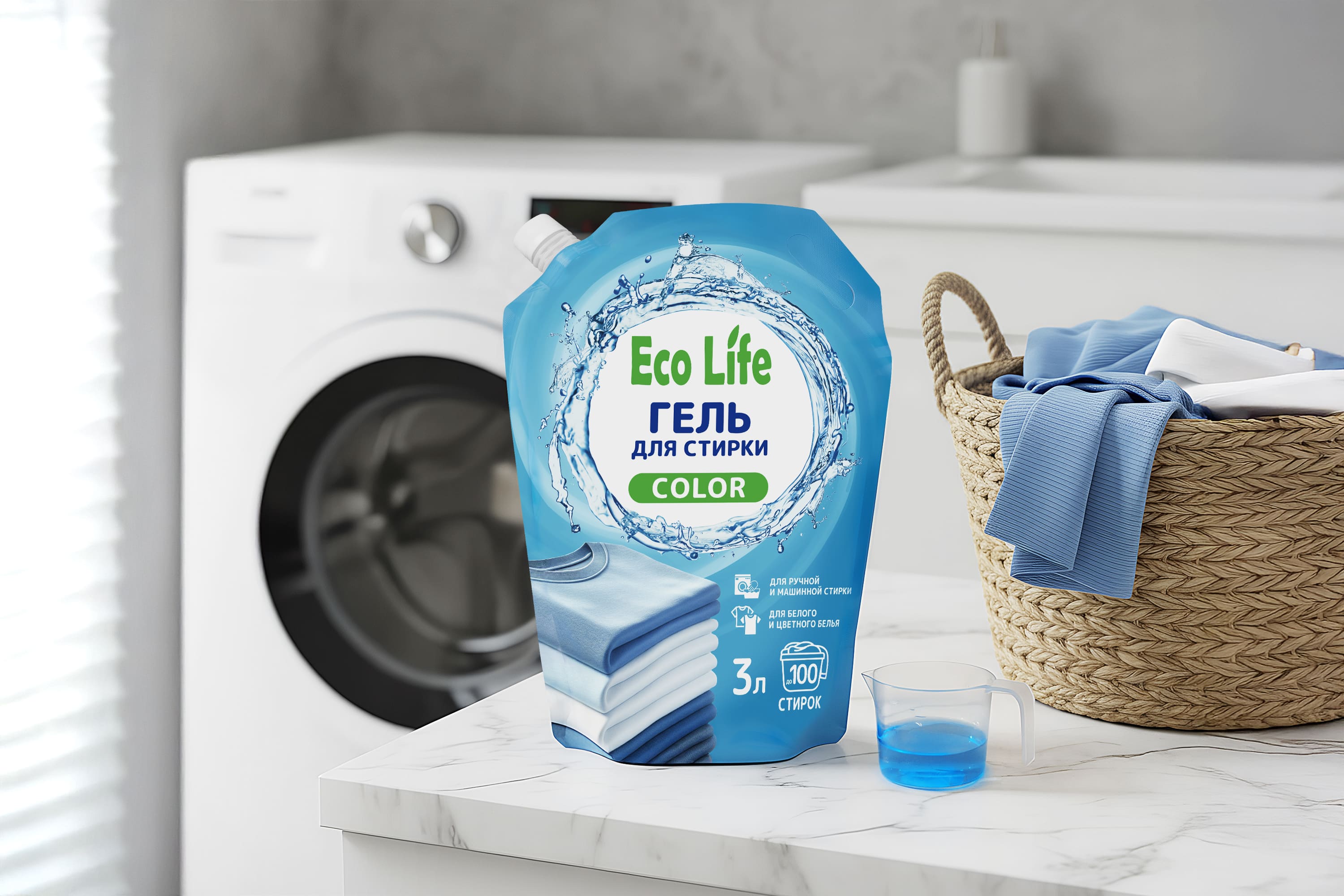 Гель для стирки COLOR ТМ "Eco Life", 3 литра — это универсальный, гипоаллергенный стиральный жидкий порошок. Применяется для стирки и замачивания изделий в стиральных машинах любого типа и ручной стирке в воде любой жесткости. Гель для стирки "Eco Life" подходит для вещей из разных тканей: хлопка, льна, атласа, поплина, сатина, денима и других кроме шерсти, шелка и раритетных тканей. Ограничений по цвету для стирки нет: его можно применять для белого, цветного и черного белья. Благодаря специальному смягчителю воды в составе, гель защищает стиральную машину от накипи. Он не оставляет следов и разводов, полностью выполаскивается из ткани. Средство для стирки белья произведено по ГОСТ 32479-2013 и полностью безопасно, не имеет в составе агрессивных компонентов, не вызывает аллергии, не раздражает кожу рук, обладает приятным нежным ароматом. "Eco Life" - кристальная чистота