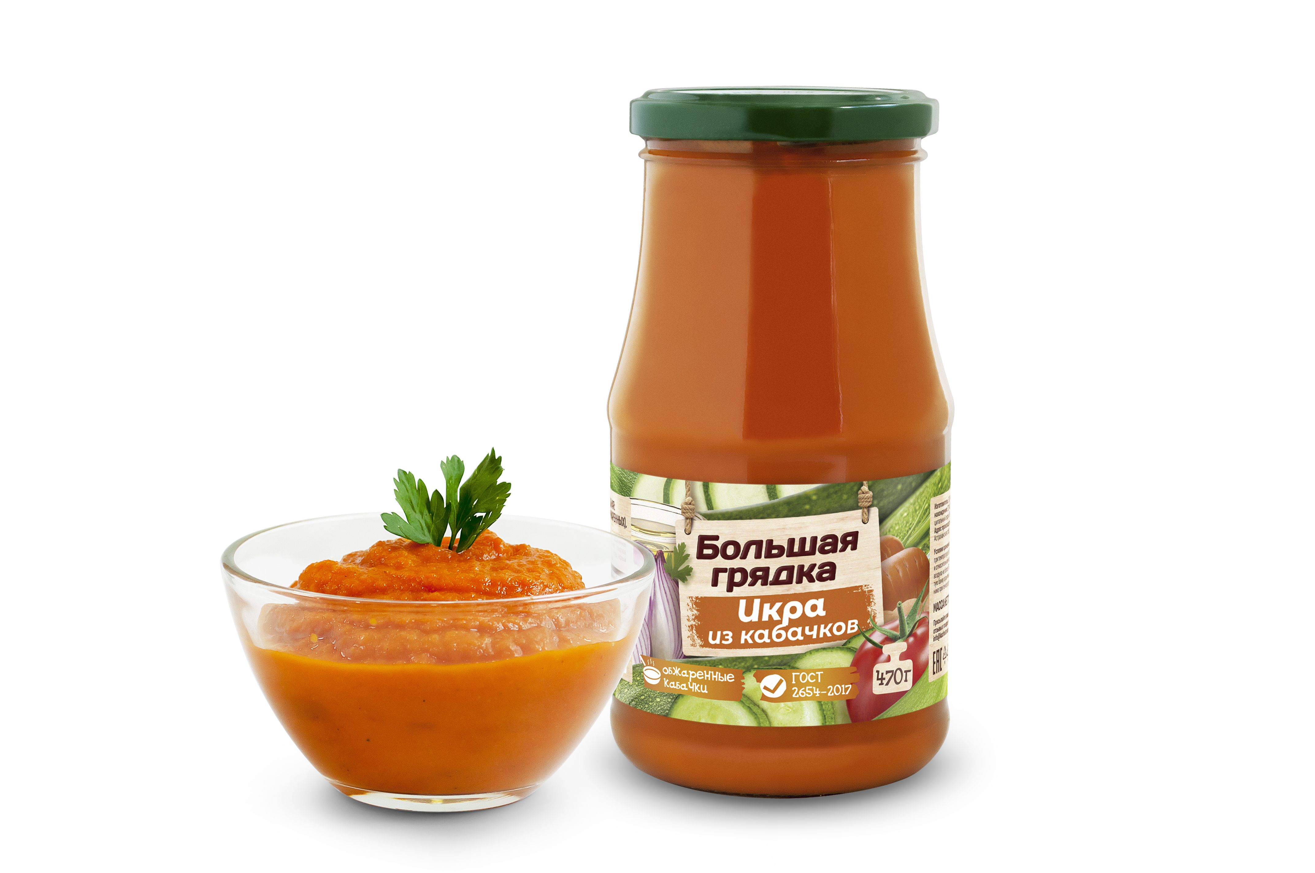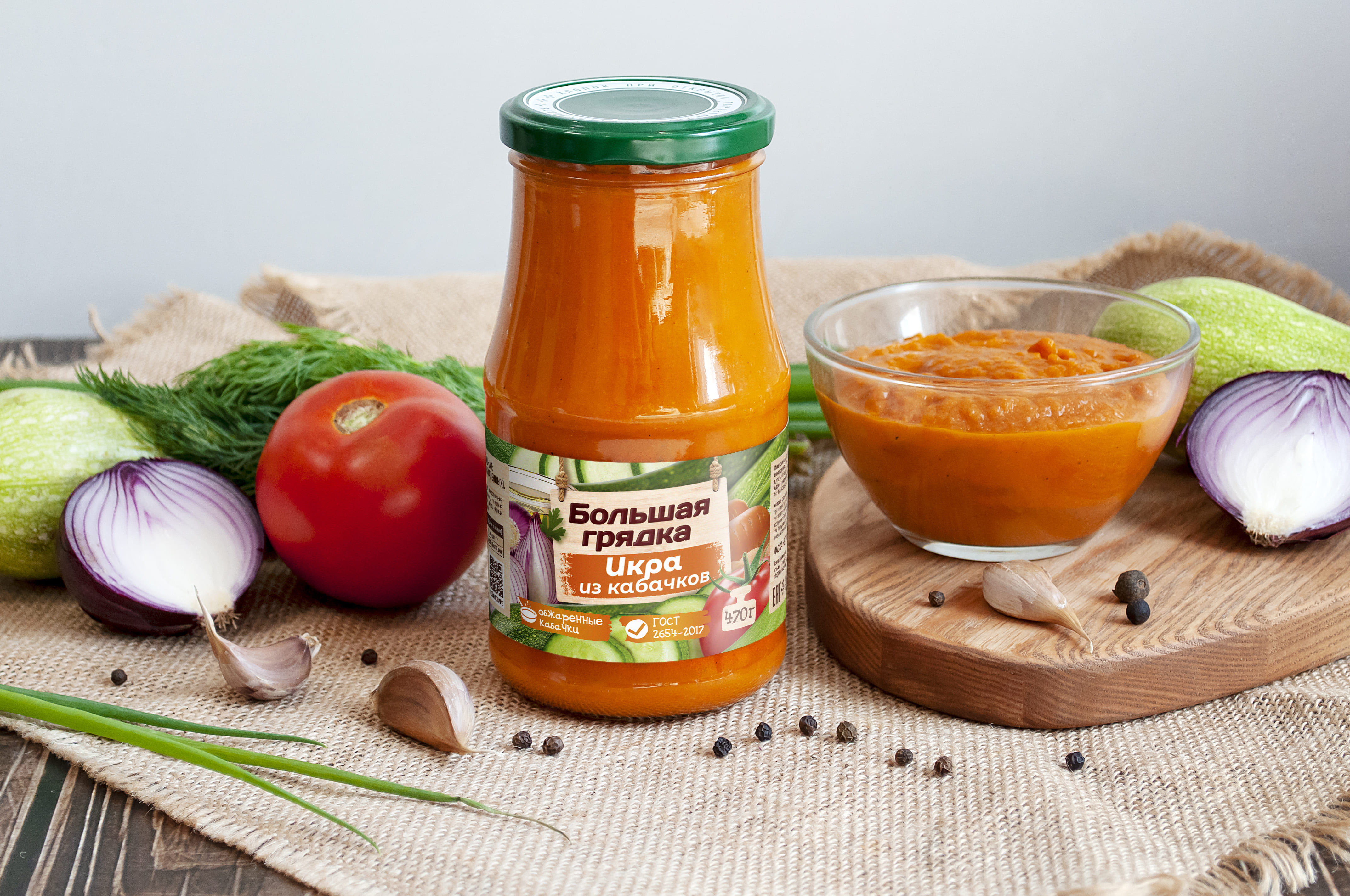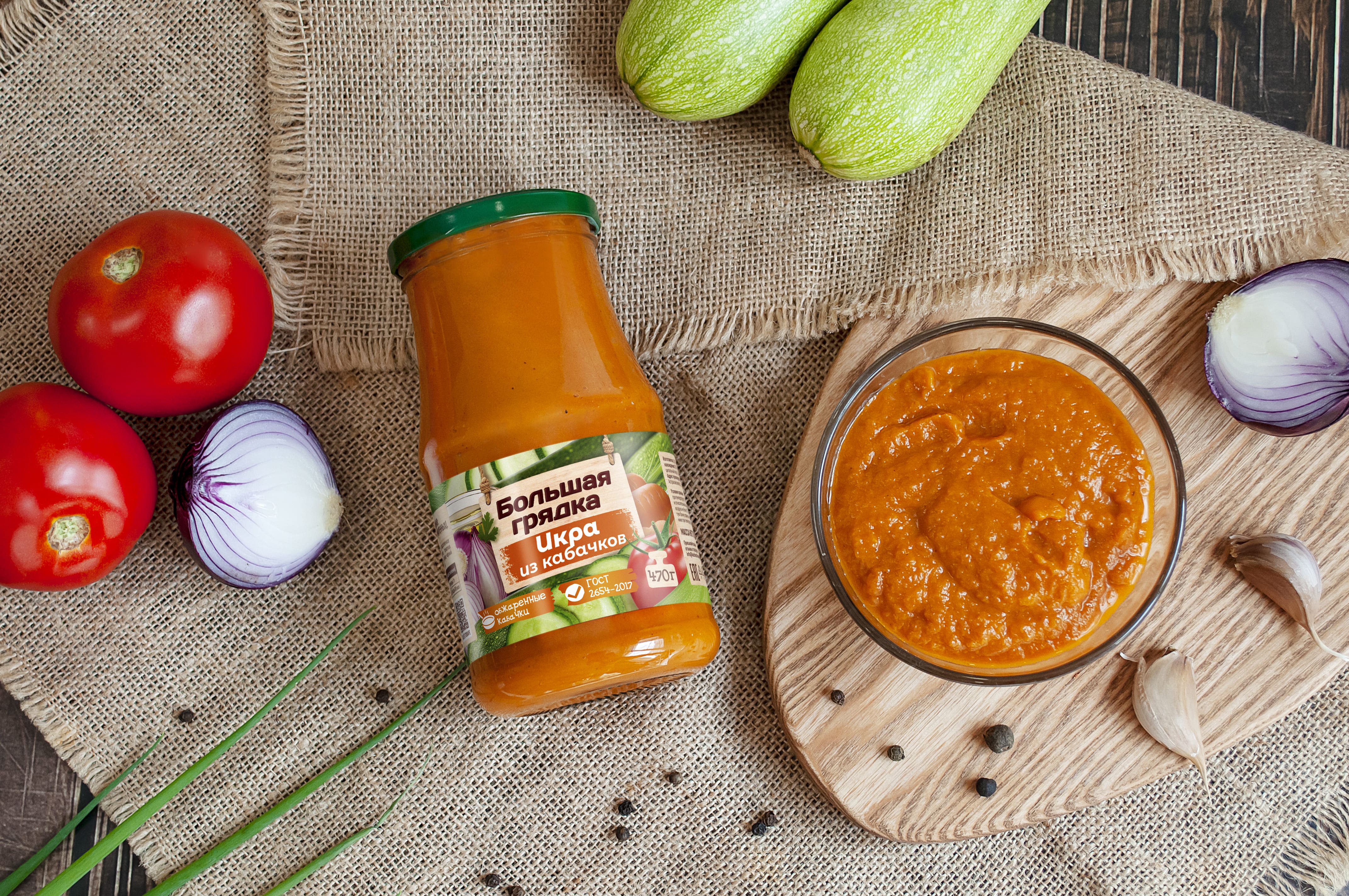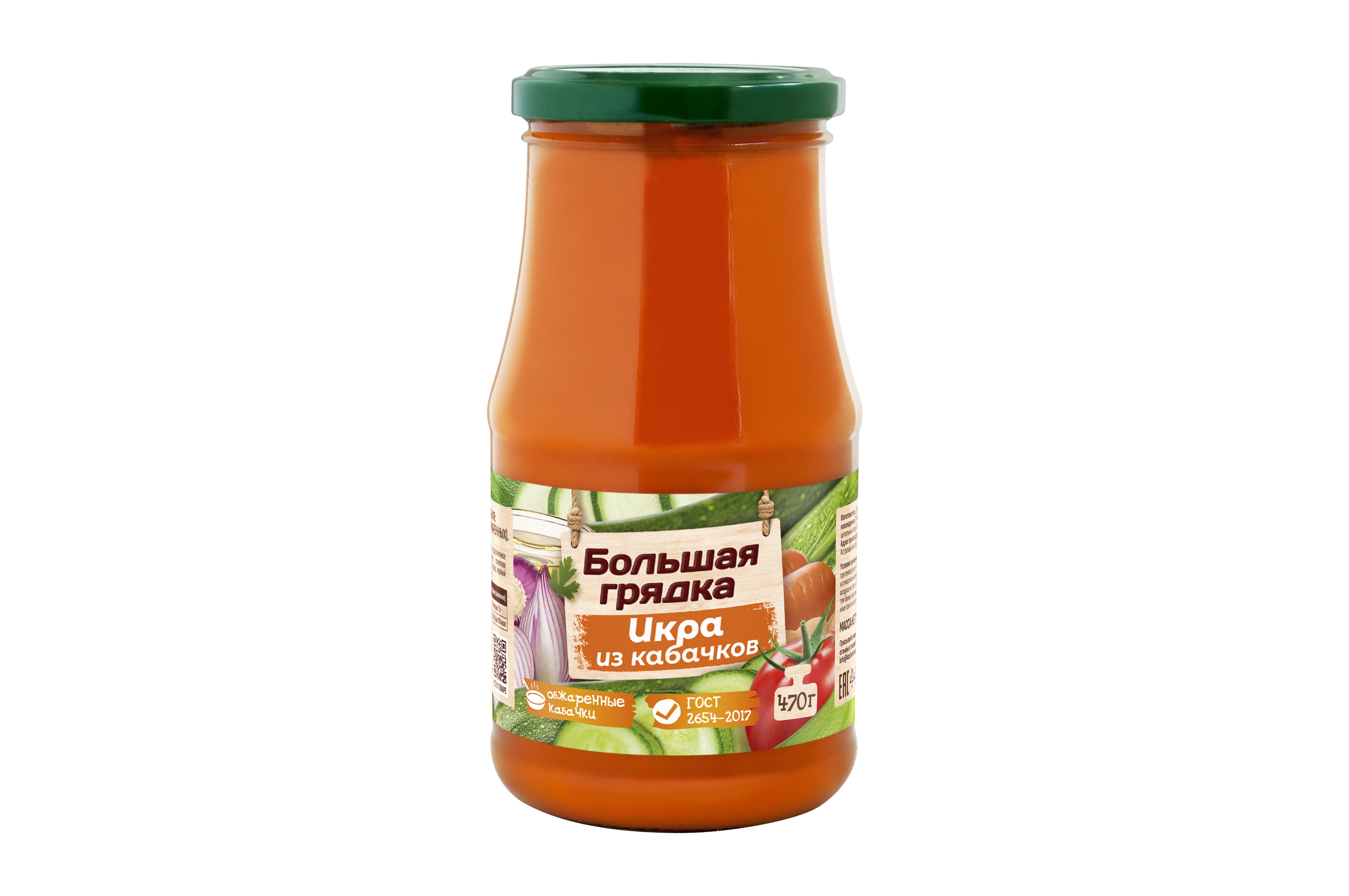 Икра кабачковая ТМ "Большая грядка" — это овощные консервы, изготовленные по специальной рецептуре из обжаренных кабачков в строгом соответствии с ГОСТ 2654-2017. В составе продукта натуральные овощи: кабачки с морковью, репчатый лук, а также черный молотый и душистый перец. Отборные овощи и яркий букет специй придают икре по-настоящему домашний вкус. "Большая грядка" - многообразие натуральных вкусов!