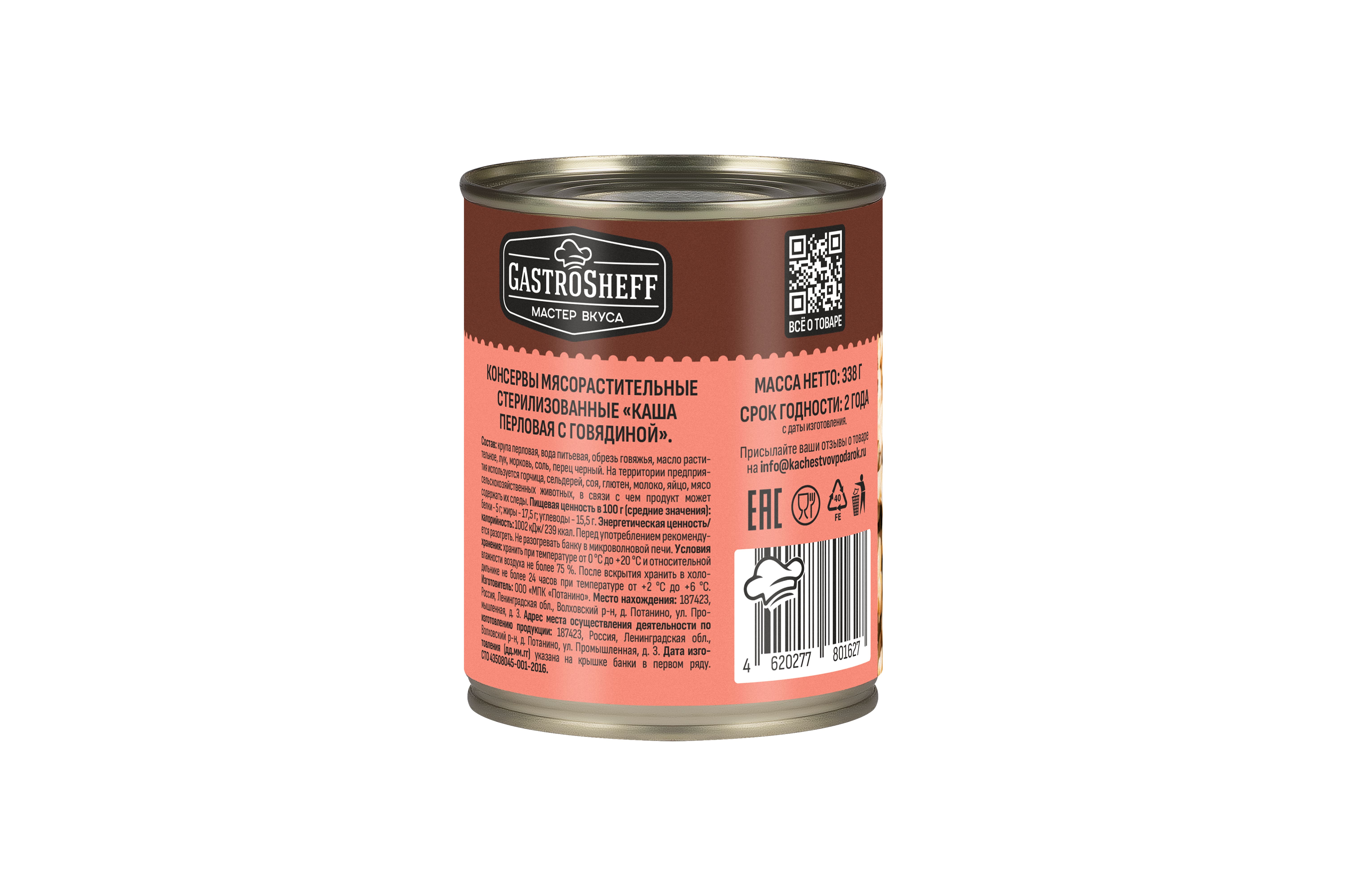 Крупа перловая, вода питьевая, обрезь говяжья, масло растительное, лук, морковь, соль, перец черный.