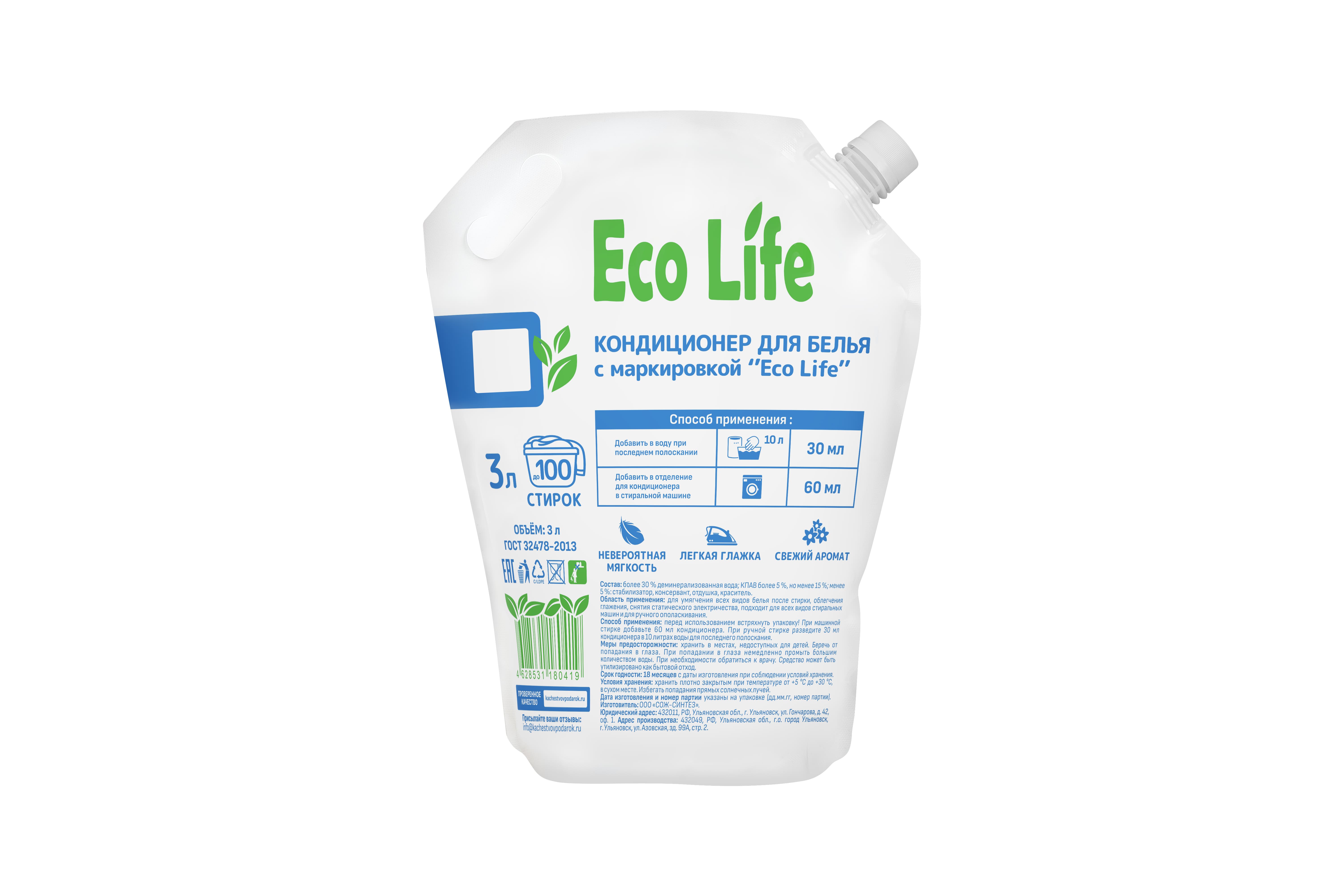 Кондиционер для белья "Eco Life", 3л