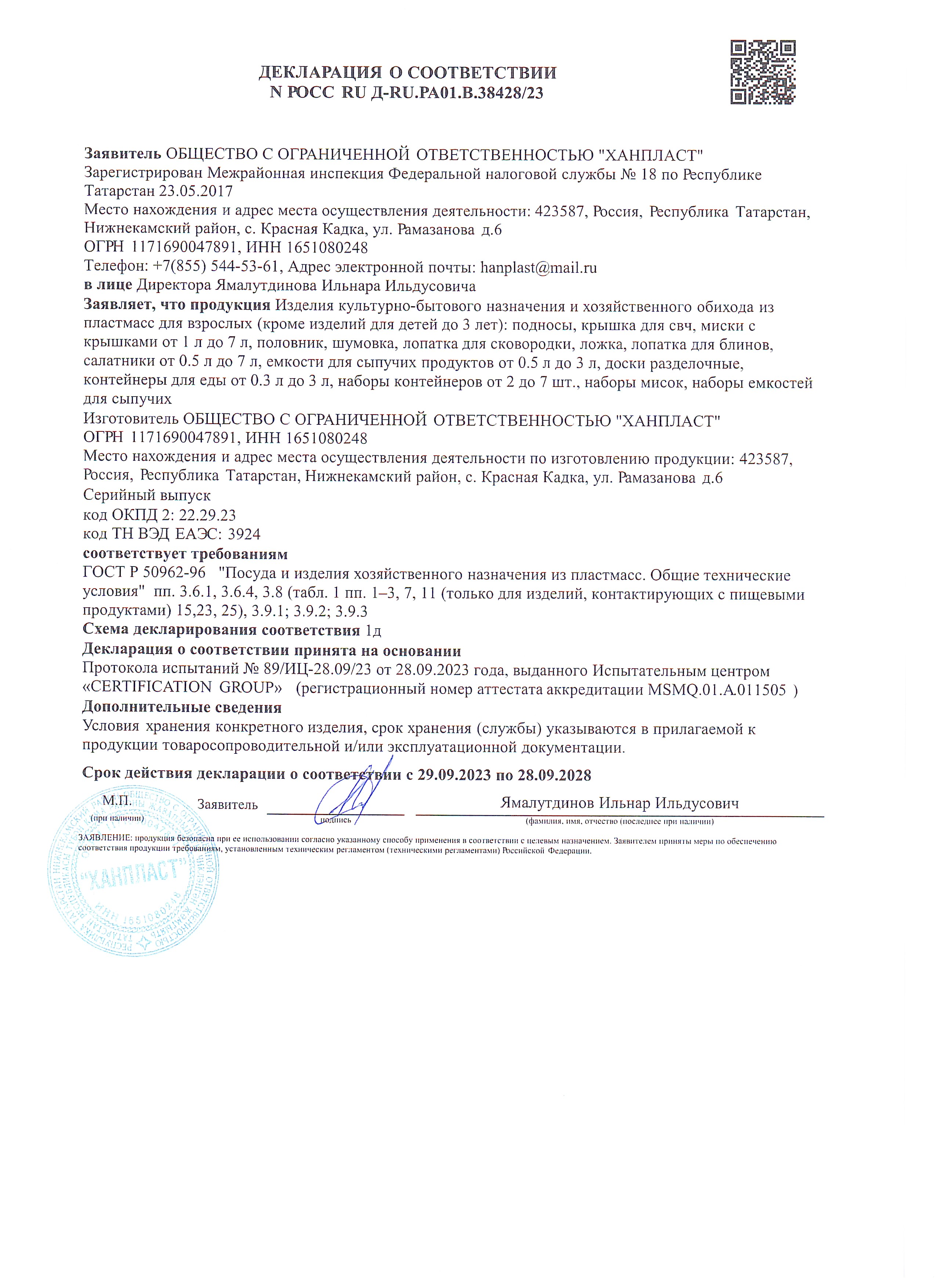 Декларация о соответствии Скачать