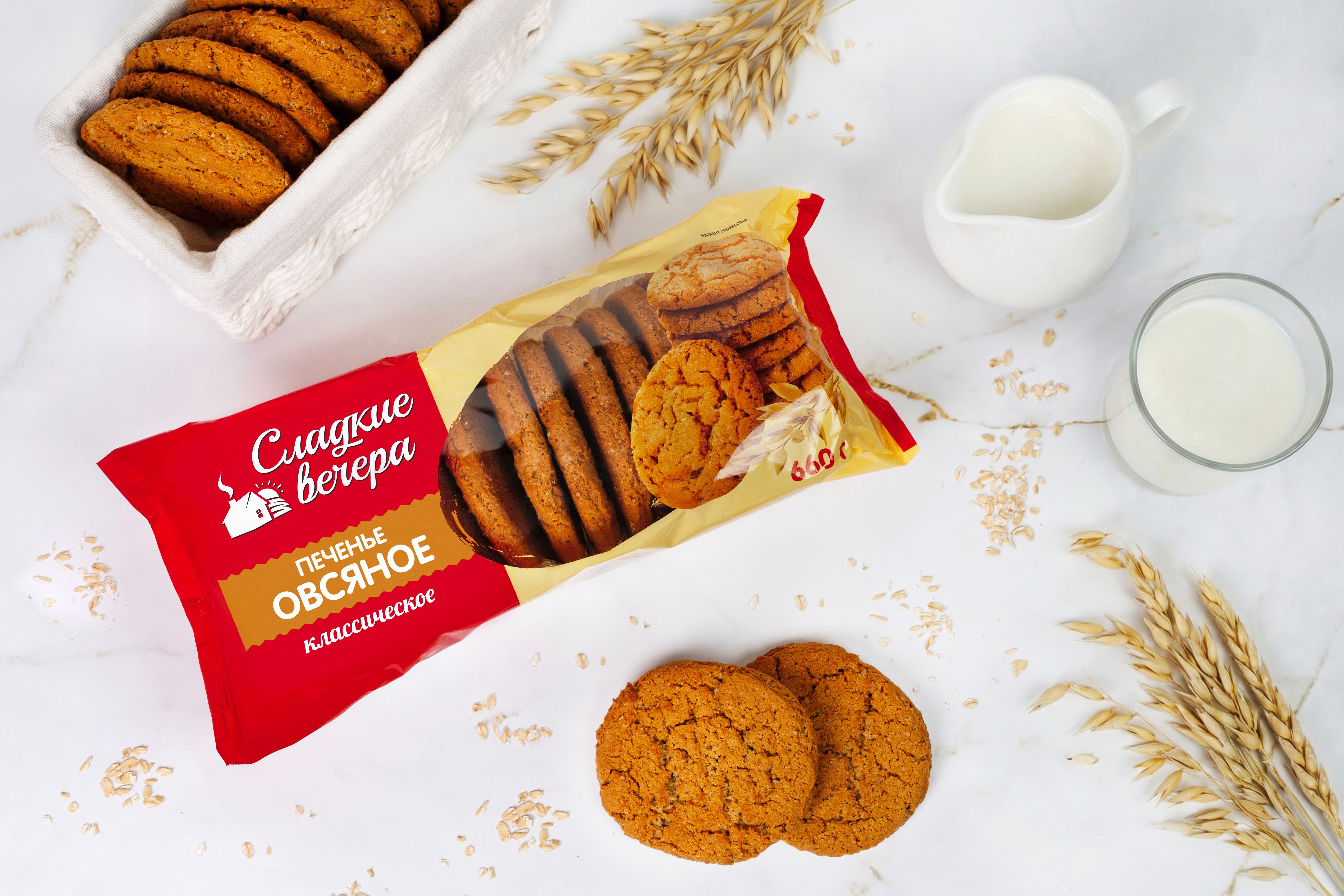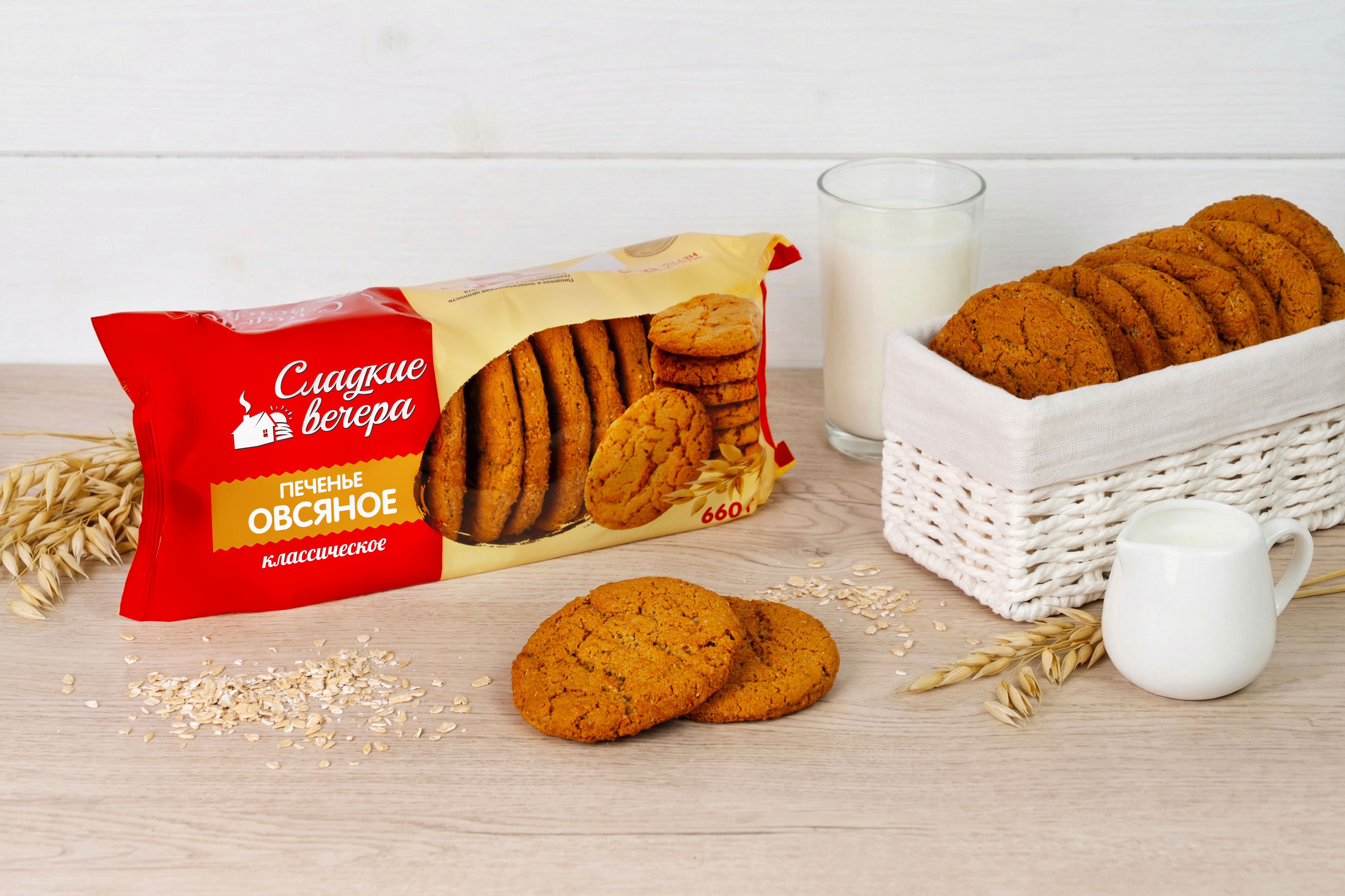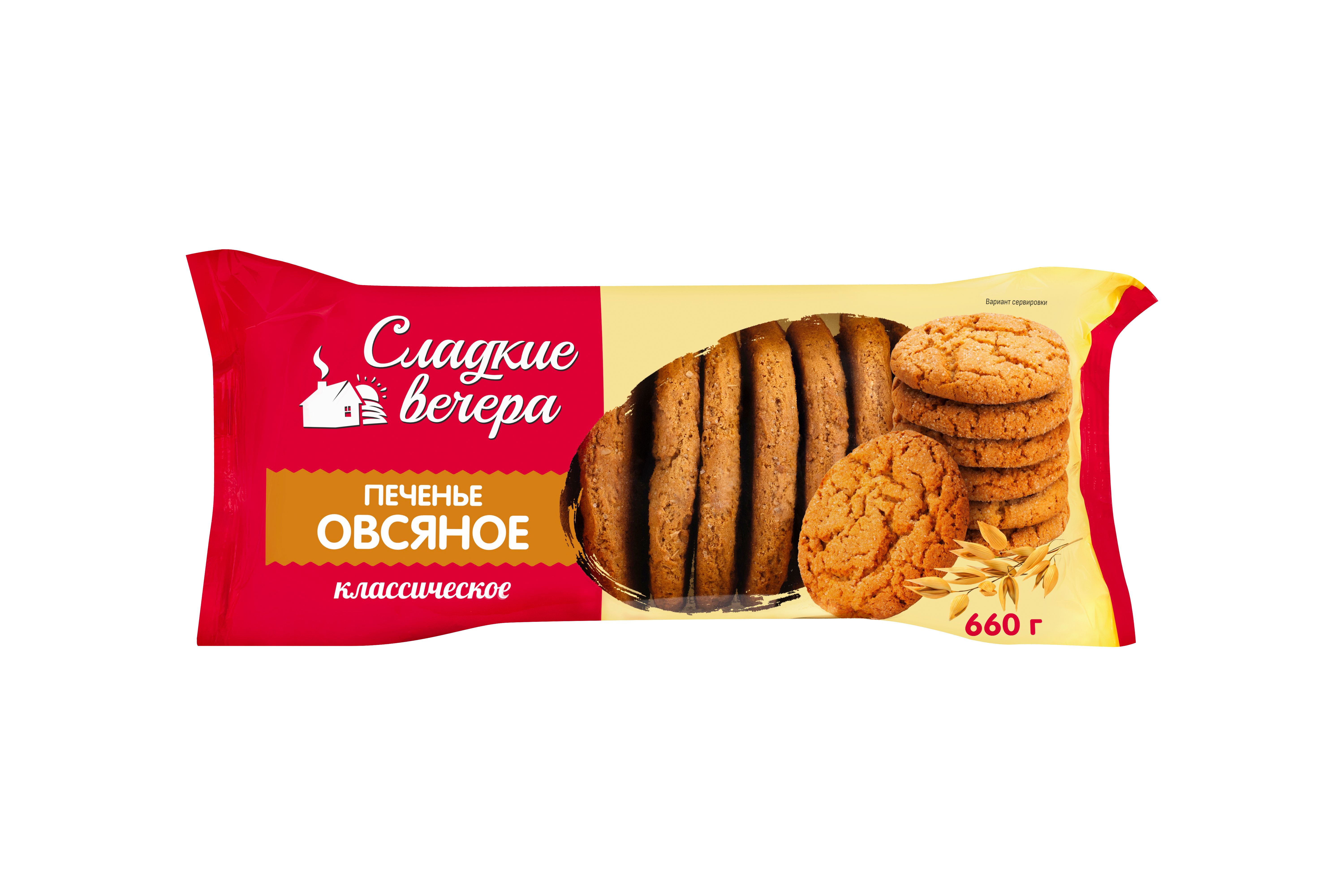Овсяное печенье ТМ “Сладкие вечера”, 660 г. имеет сладкий, в меру пряный вкус и рассыпчатую структуру. Мягкая сердцевина и хрустящие края натурального овсяного печенья “Сладкие вечера” обязательно понравится всем вашим членам семьи. Печенье выполнено по ГОСТ 24901-2023 без добавления консервантов и усилителей вкуса. “Сладкие вечера” – это лакомства для души, с которыми каждый ваш вечер будет сладким.