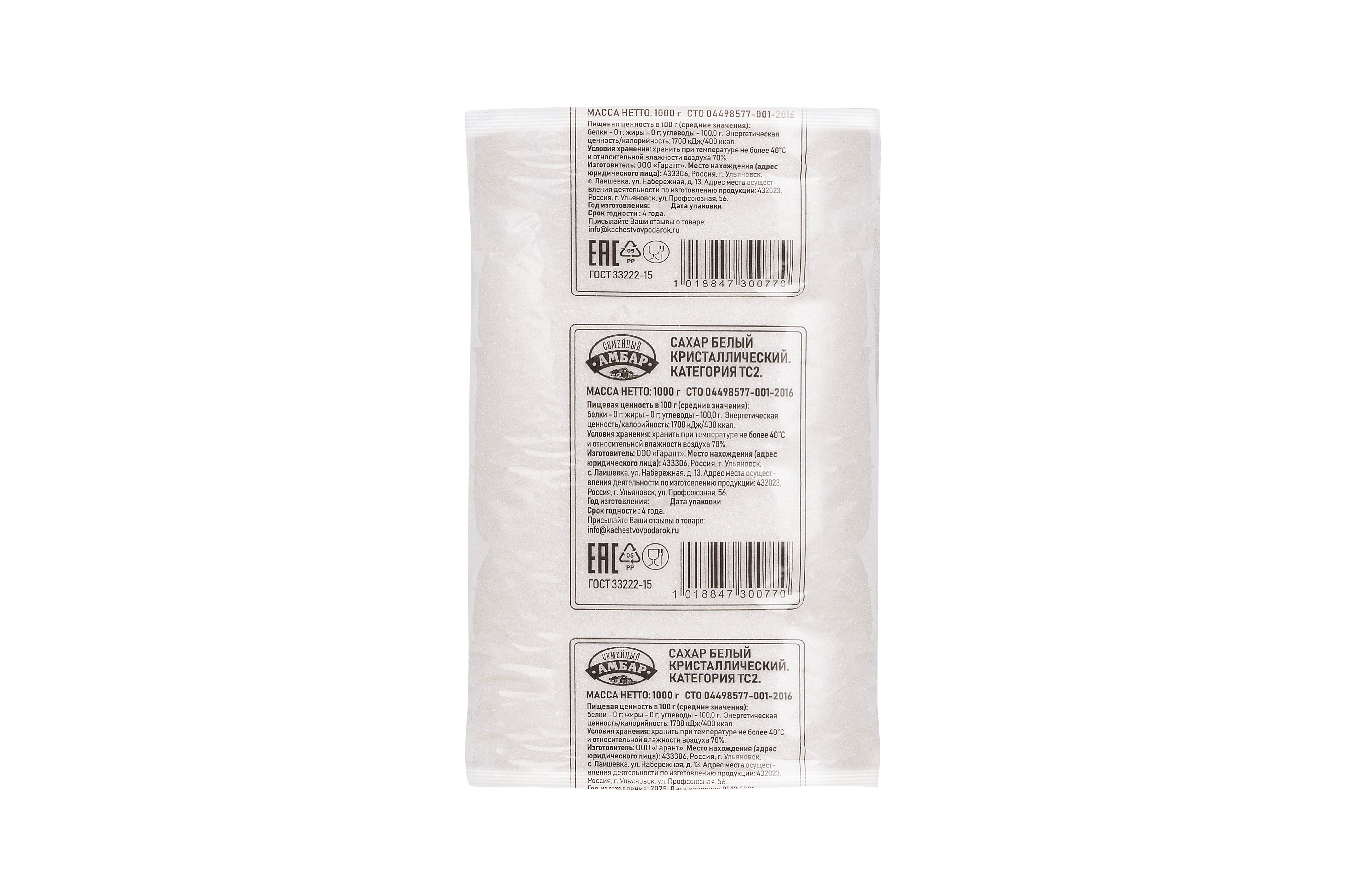 Сахар белый кристаллический. Категория ТС2