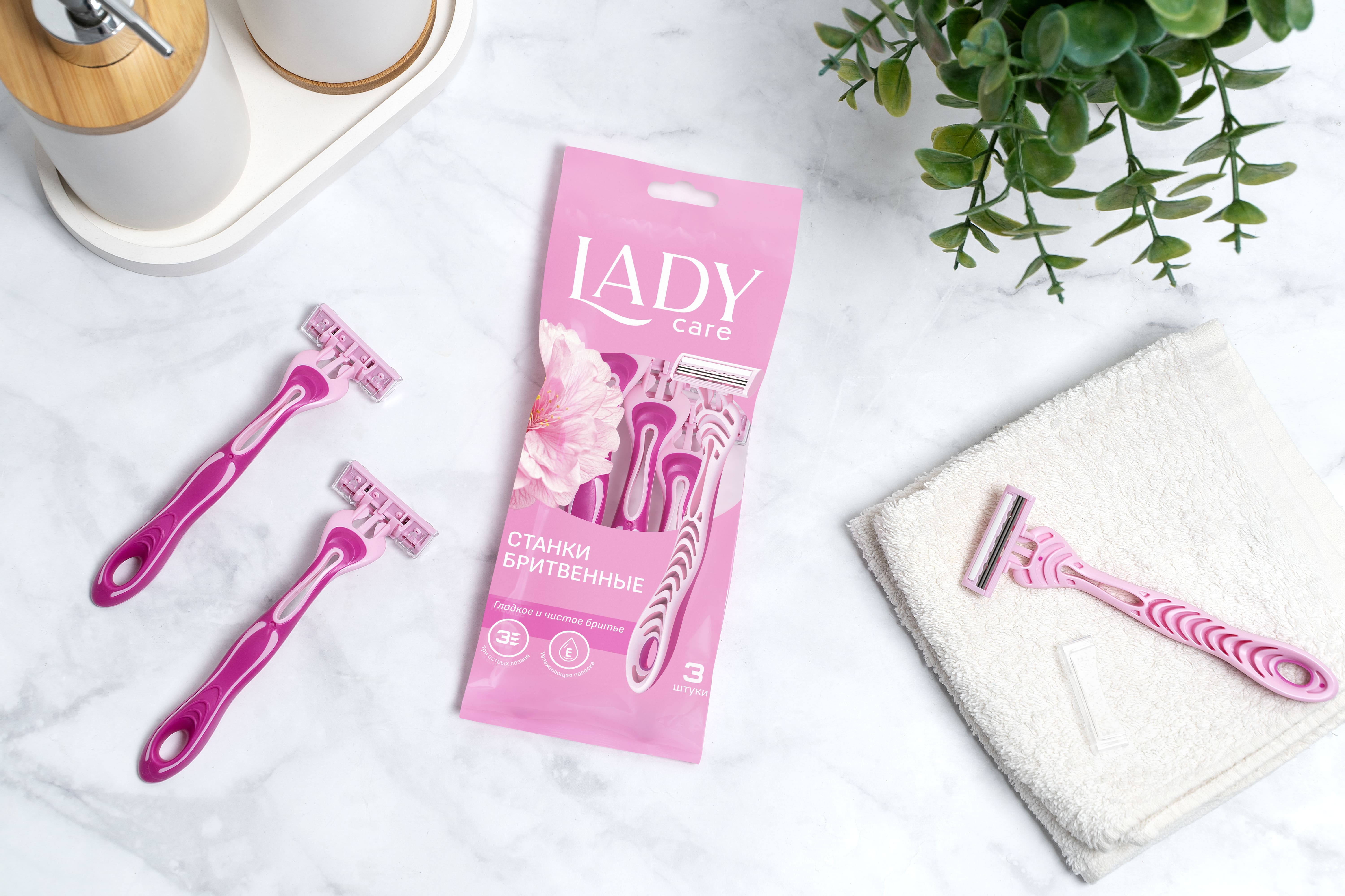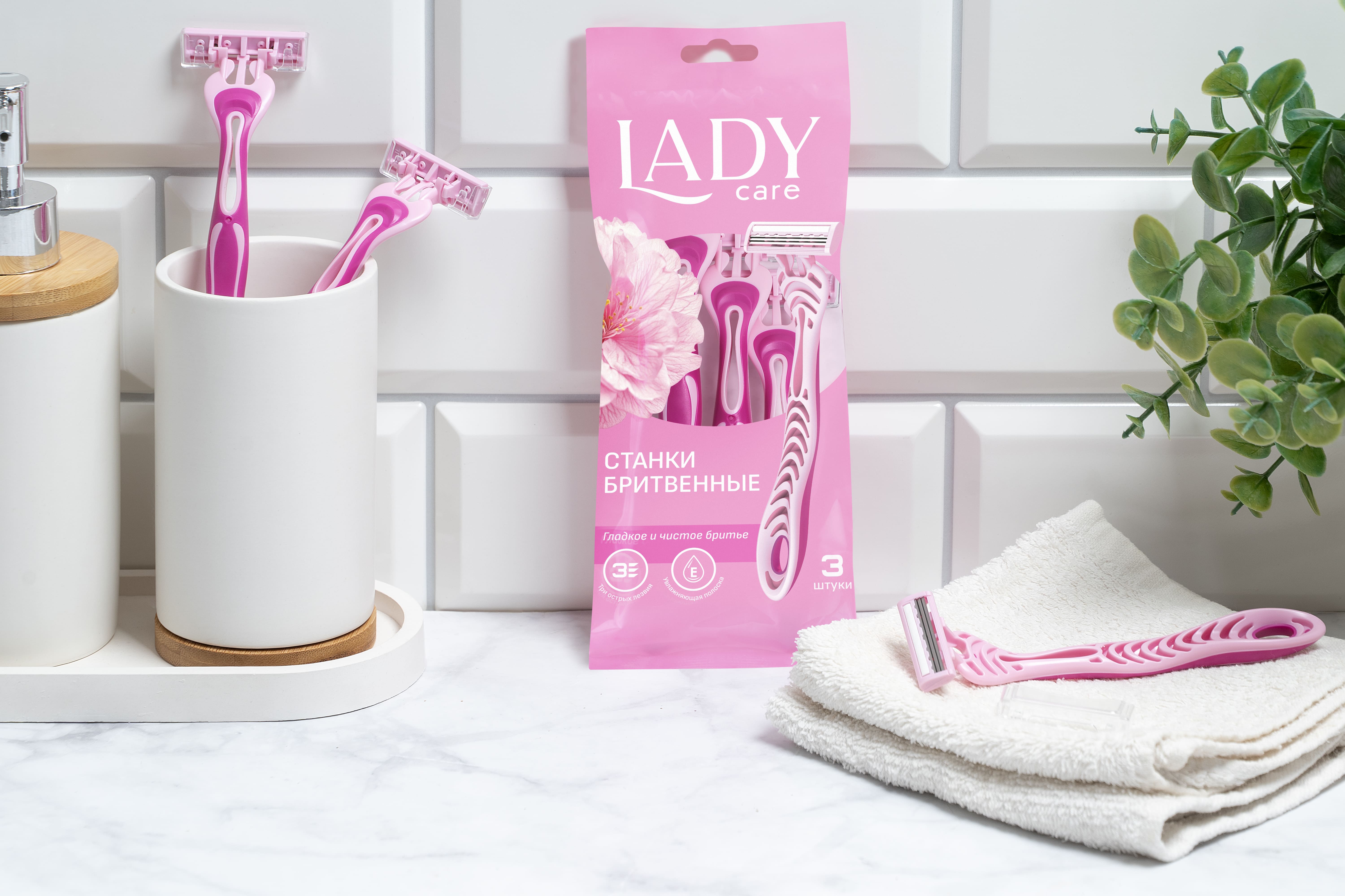 Станки бритвенные женские ТМ "Lady Care" — набор женских одноразовых бритвенных станков с увлажняющей полосой "LADY CARE", 3 лезвия, 3 шт. в упаковке. Специальная смазывающая полоска с экстрактом Алоэ вера и витамином Е увлажняет и успокаивает вашу кожу, подходит для чувствительной кожи. Станки для бритья одноразовые женские "LADY CARE" с увлажняющей полосой обеспечивают комфортное и гладкое бритье. Увлажняющая полоса помогает предотвратить раздражение кожи, делая процесс бритья более приятным. Каждый станок оснащен несколькими лезвиями для более эффективного удаления волос. Они идеально подходят для использования в домашних условиях и в поездках, так как не требуют дополнительного ухода. Два лезвия из высококачественной нержавеющей стали предназначены для бритья и удаления волос там, где это необходимо, без лишних сложностей. Удобная форма ручки обеспечивает надежный захват и легкость в использовании. Станки подходят для всех типов кожи и могут использоваться на различных участках тела. Lady Care — ты совершенна!