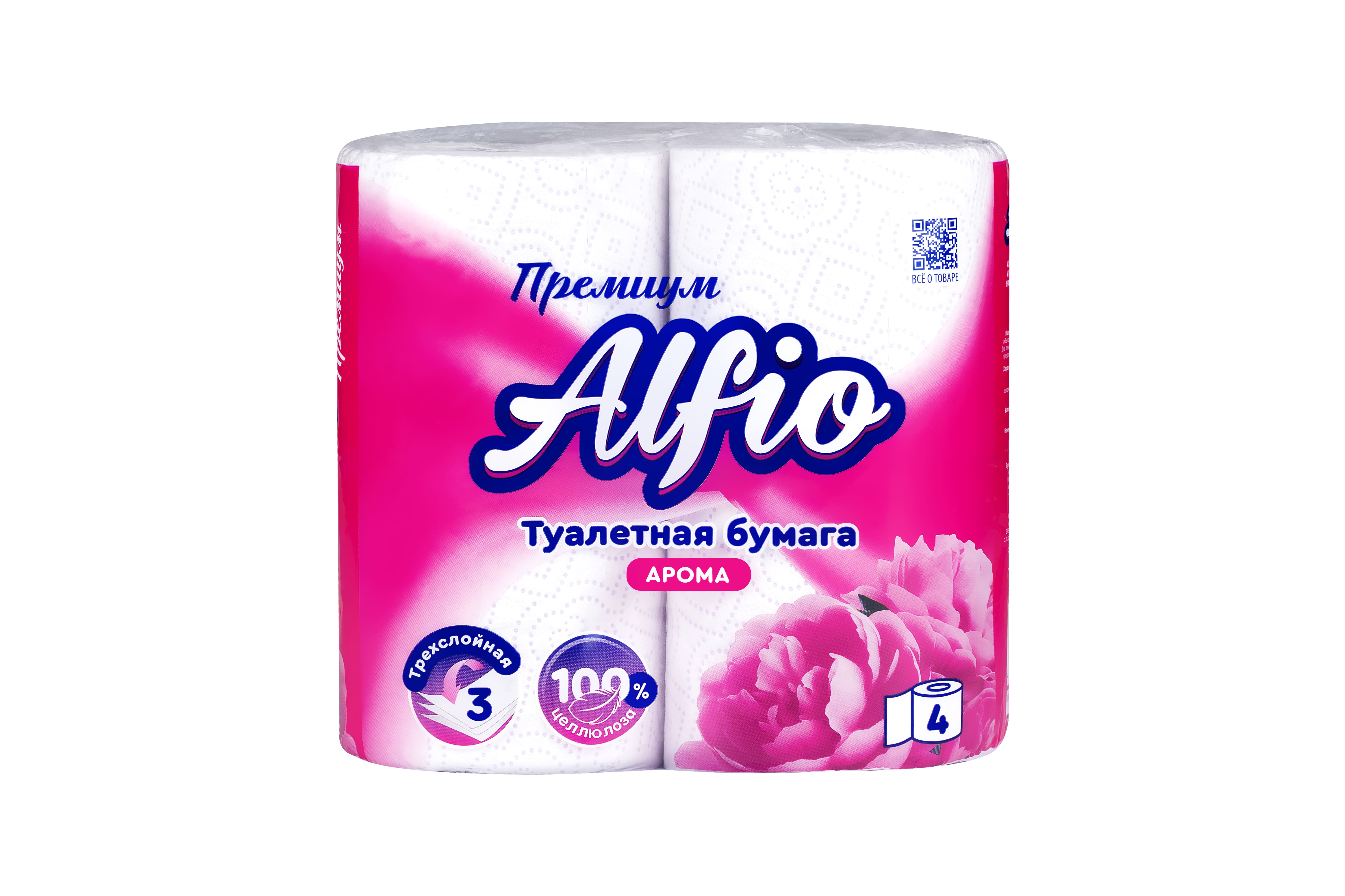 Туалетная бумага 3 слоя, 4 рулона "Alfio" Арома Премиум