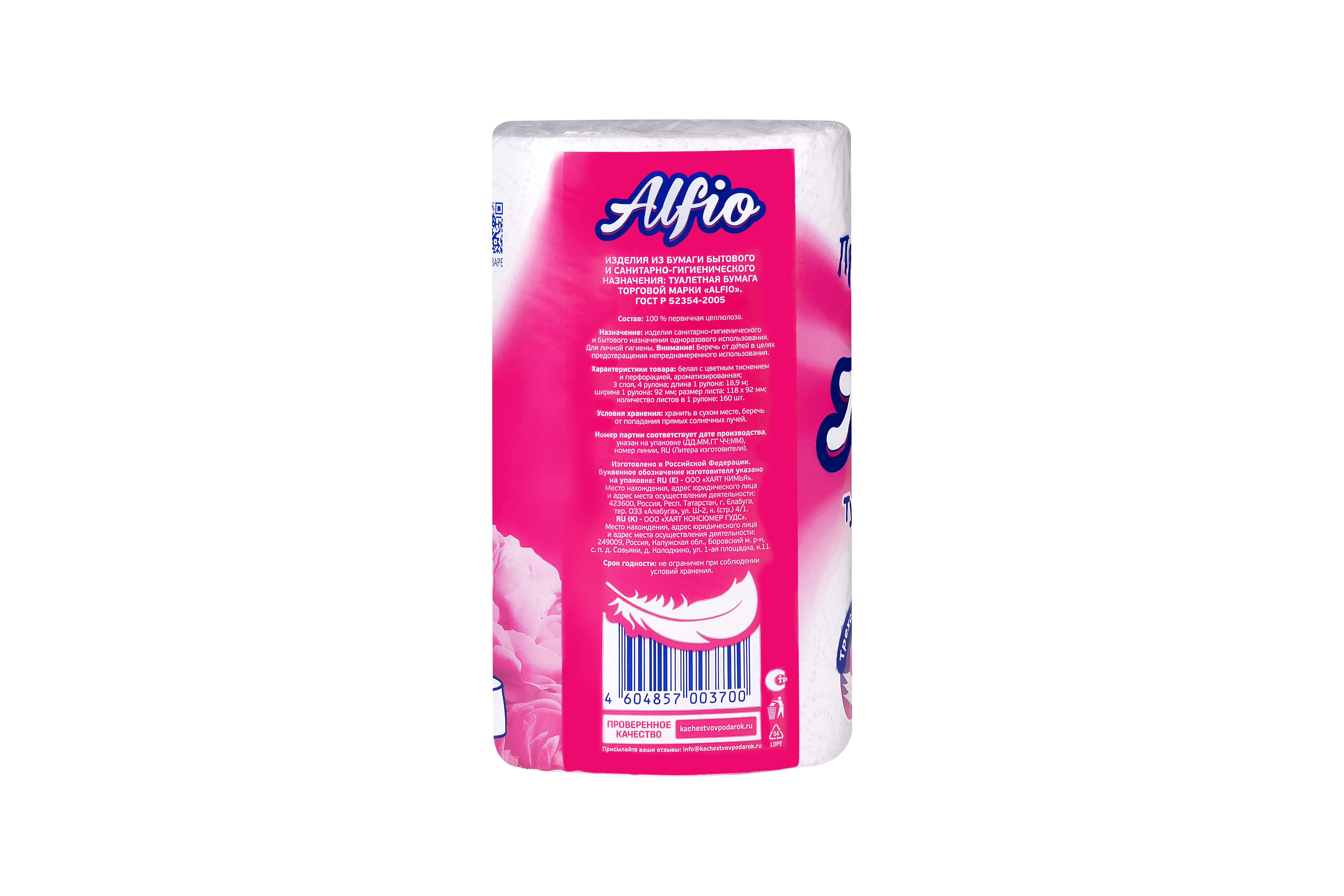 Туалетная бумага 3 слоя, 4 рулона ТМ "Alfio" — это трехслойные белые бумажные изделия с ароматной отдушкой, изготовленные по особой технологии из первичной целлюлозы. Каждый рулон длиной 18,9 м. отличается мягкостью и прочностью материала, не расслаивается и отрывается строго по линии перфорации. Наслаждайтесь комфортом и свежестью каждый день. ТМ "Alfio" - облако нежности!