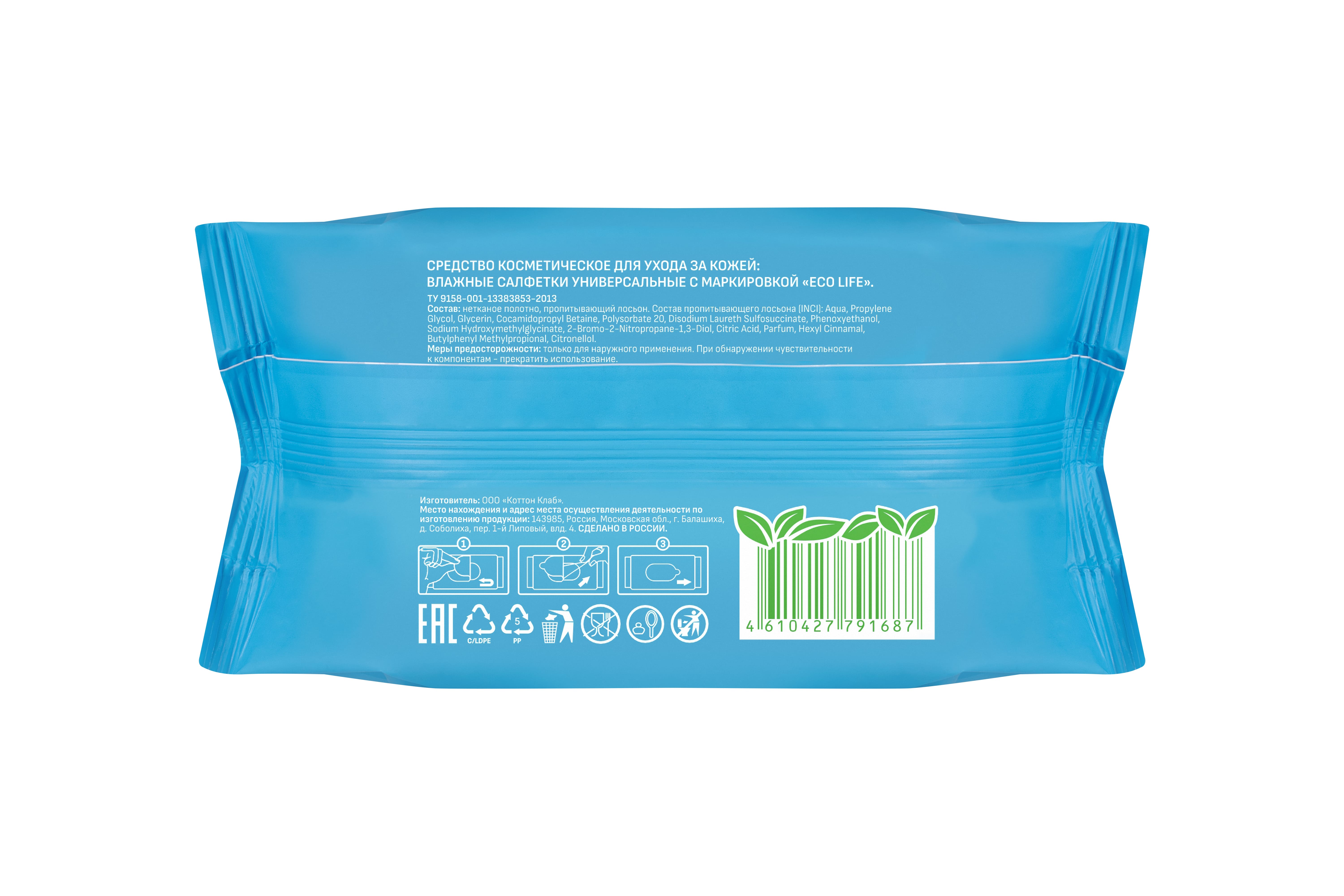 Нетканое полотно, пропитывающий лосьон. Состав пропитывающего лосьона (INCI): Aqua, Propylene Glycol, Glycerin, Cocamidopropyl Betaine, Polysorbate 20, Sodium Hydroxymethylglycinate, Phenoxyethanol, 2-Bromo-2-Nitropropane-1,3-Diol, Trideceth-9, Iodopropynyl Butylcarbamate, Citric Acid, Parfum, Hexyl Cinnamal, Butylphenyl Methylpropional, Citronellol