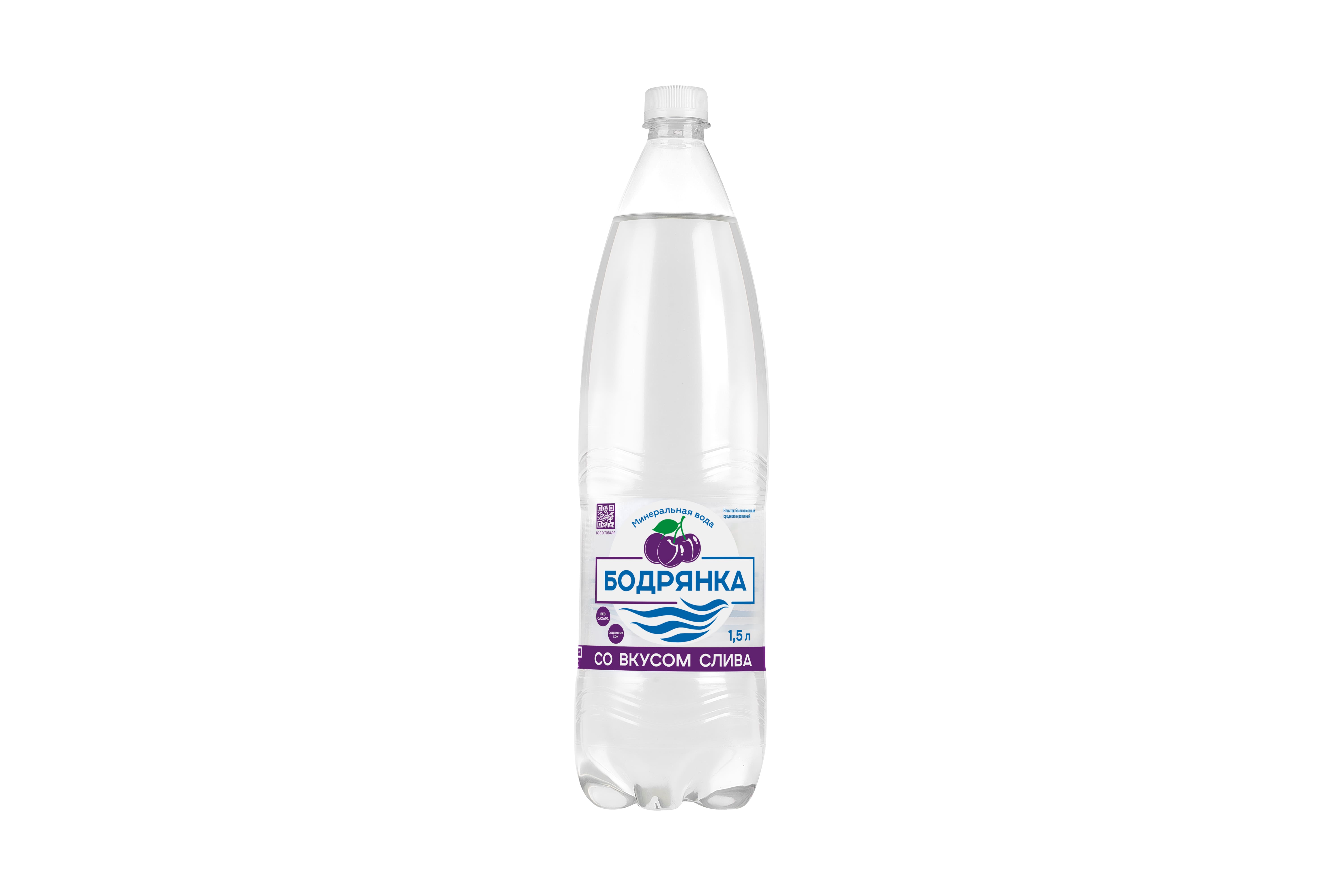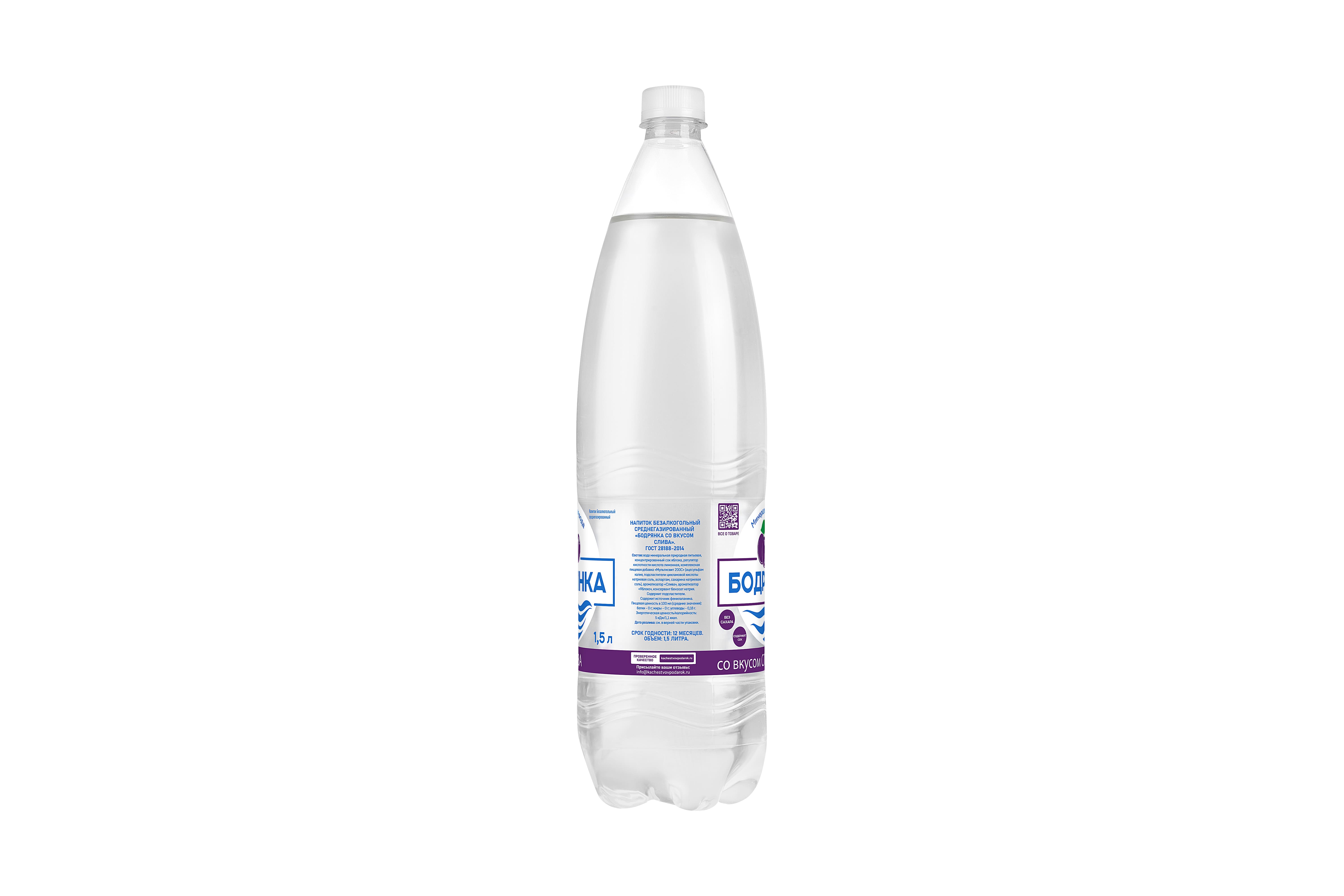 Напиток безалкогольный среднегазированный "Бодрянка со вкусом Слива". Без сахара, содержит сок. ГОСТ 28188-2014