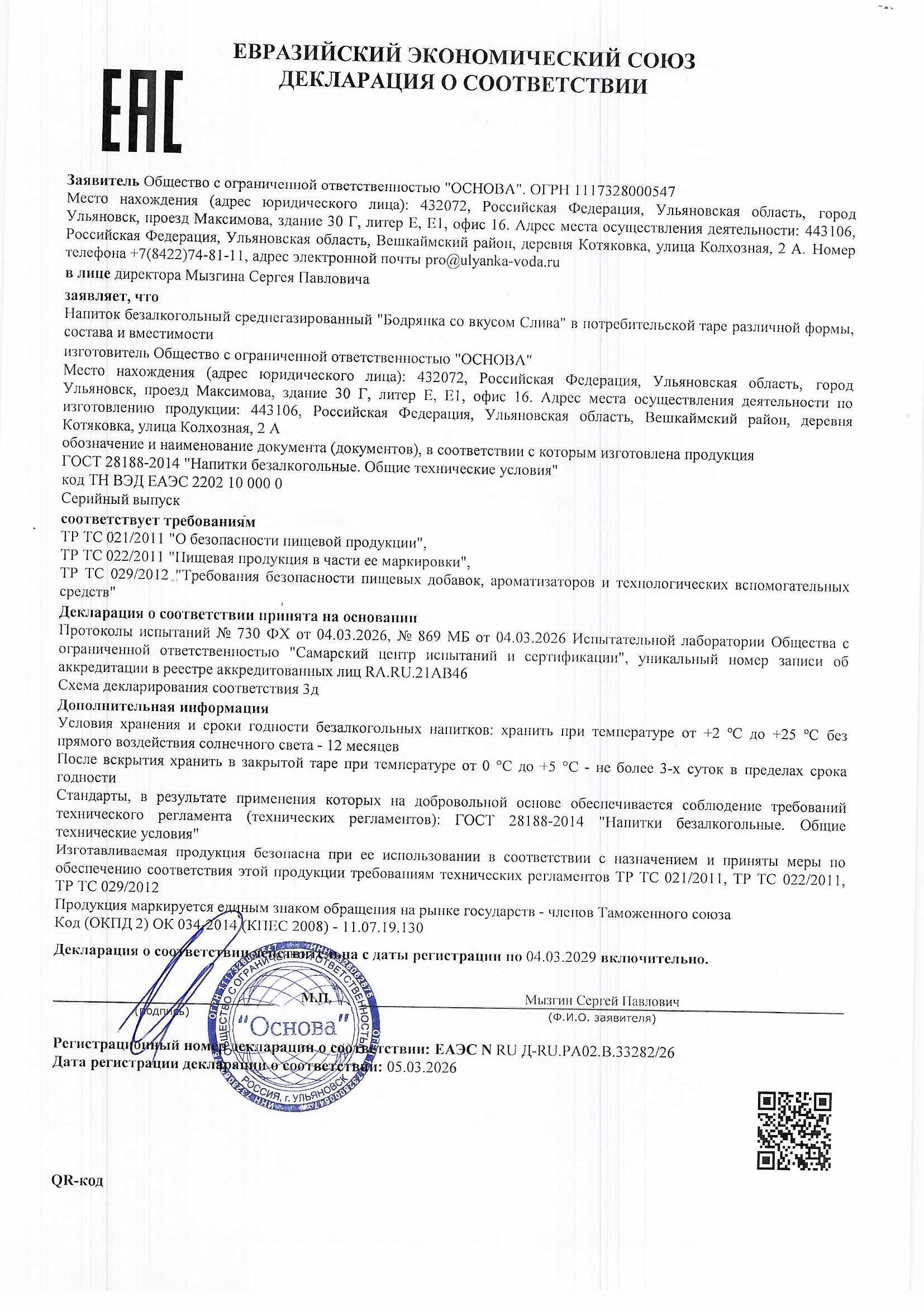 Декларация о соответствии Скачать
