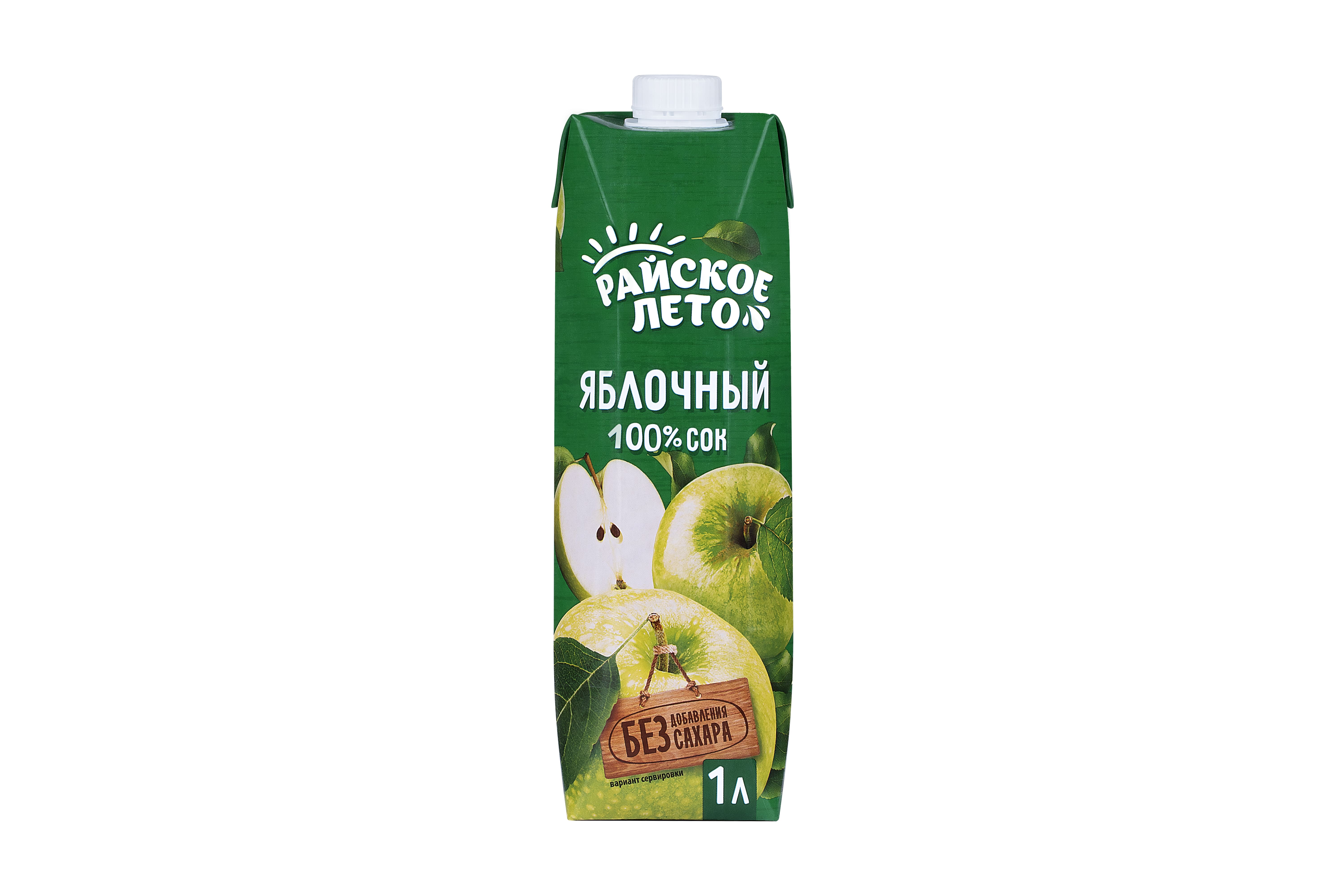 Сок яблочный восстановленный осветленный “Райское лето”, 1 литр — это натуральный, вкусный и полезный продукт, в составе которого только яблочный сок и никаких добавок. Яркий вкус и аромат зеленый спелых яблок подарит праздничное настроение. Сок содержит большое количество витаминов и микроэлементов. Современные технологии и тщательный контроль всех этапов производства обеспечивает идеальный вкус, чистый состав и доступные цены продукции бренда "Райское лето". Подходит для употребления взрослым и детям от 3-х лет школьного и дошкольного возраста. "Райское лето" - соки и нектары из отборных фруктов и овощей.