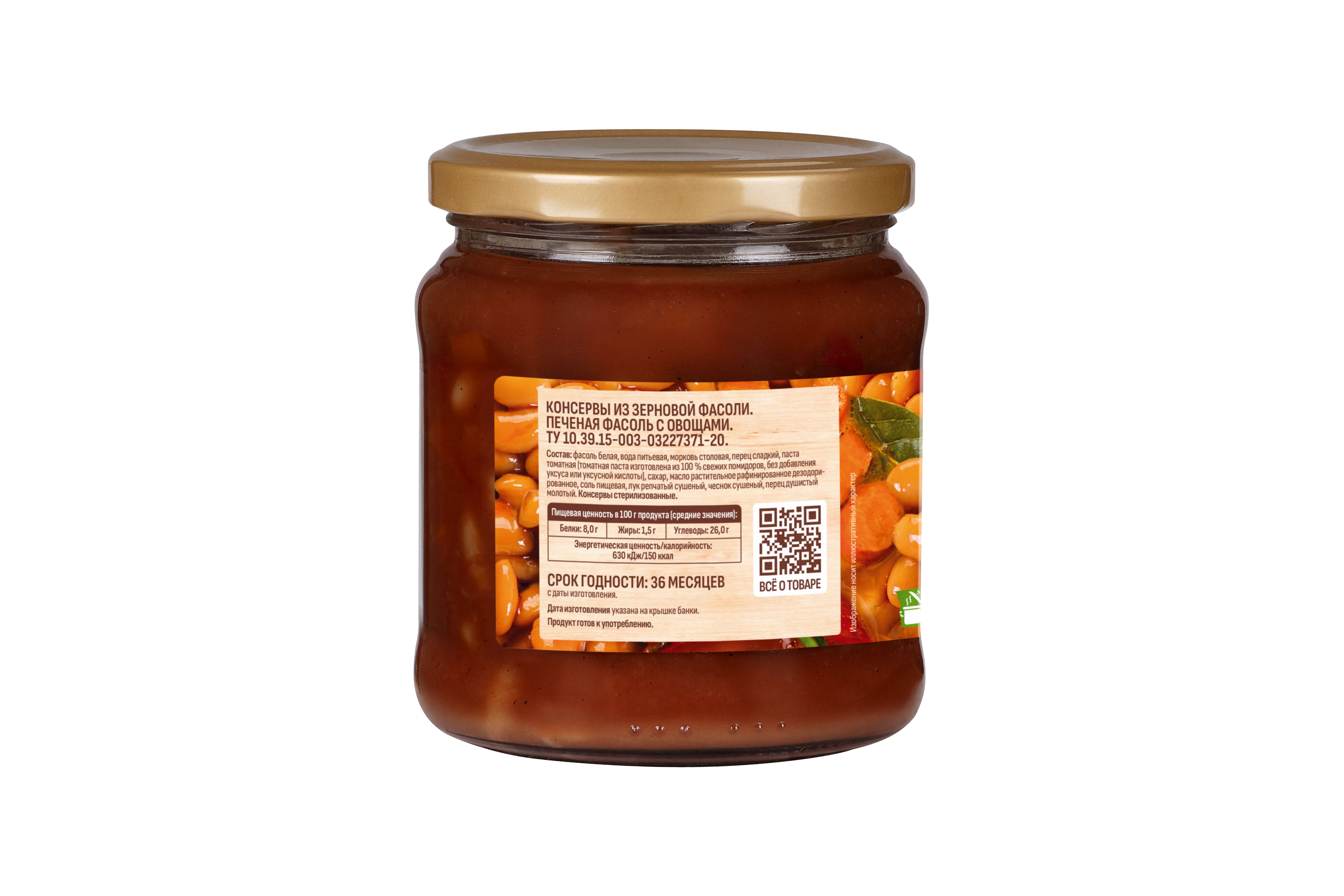 Фасоль белая лопатка, вода питьевая, паста томатная, сахар, соль, масло растительное рафинированное дезодорированное, паприка, морковь, перец сладкий, чеснок, лук репчатый, перец красный молотый, перец душистый молотый.