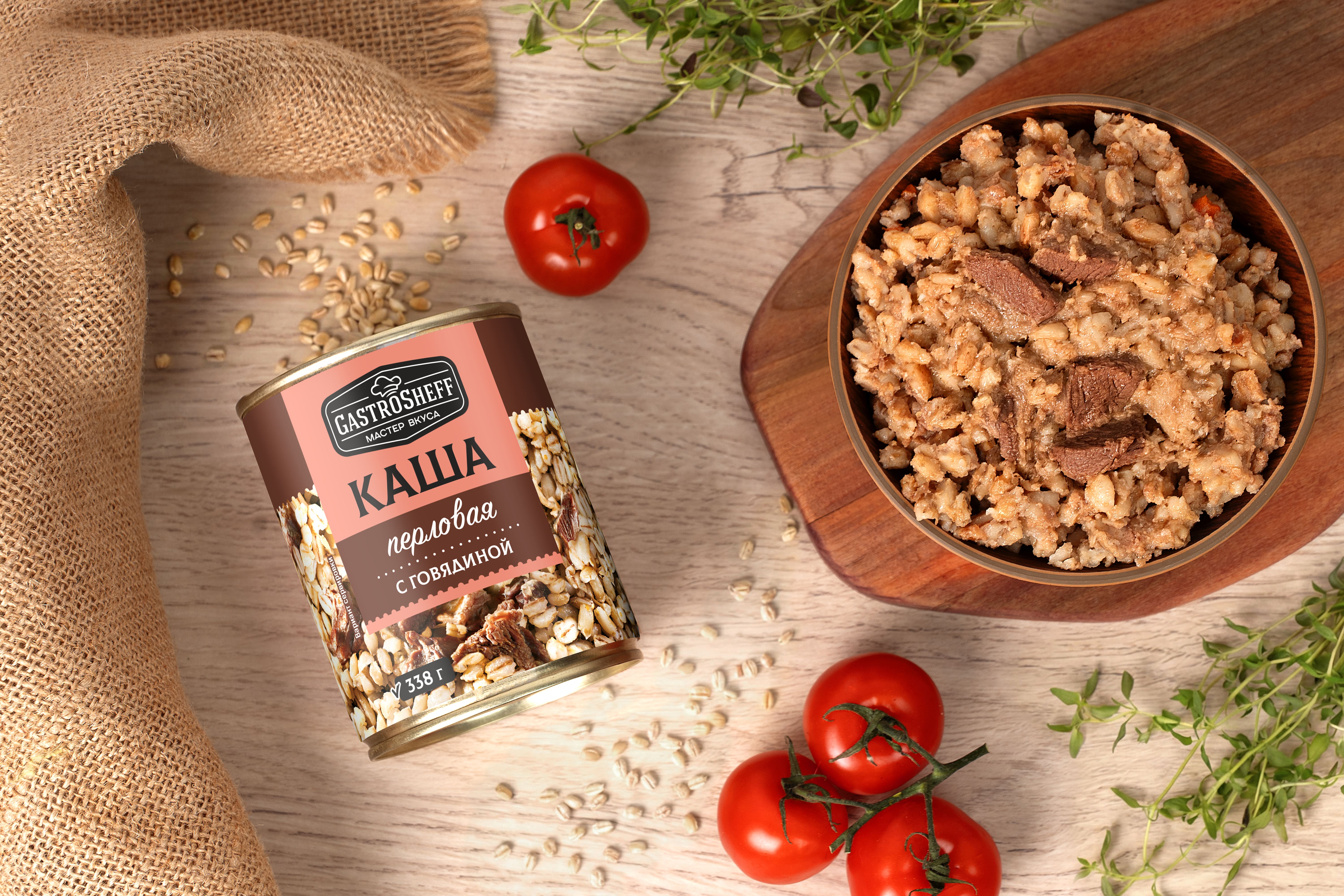 Крупа перловая, вода питьевая, обрезь говяжья, масло растительное, лук, морковь, соль, перец черный.