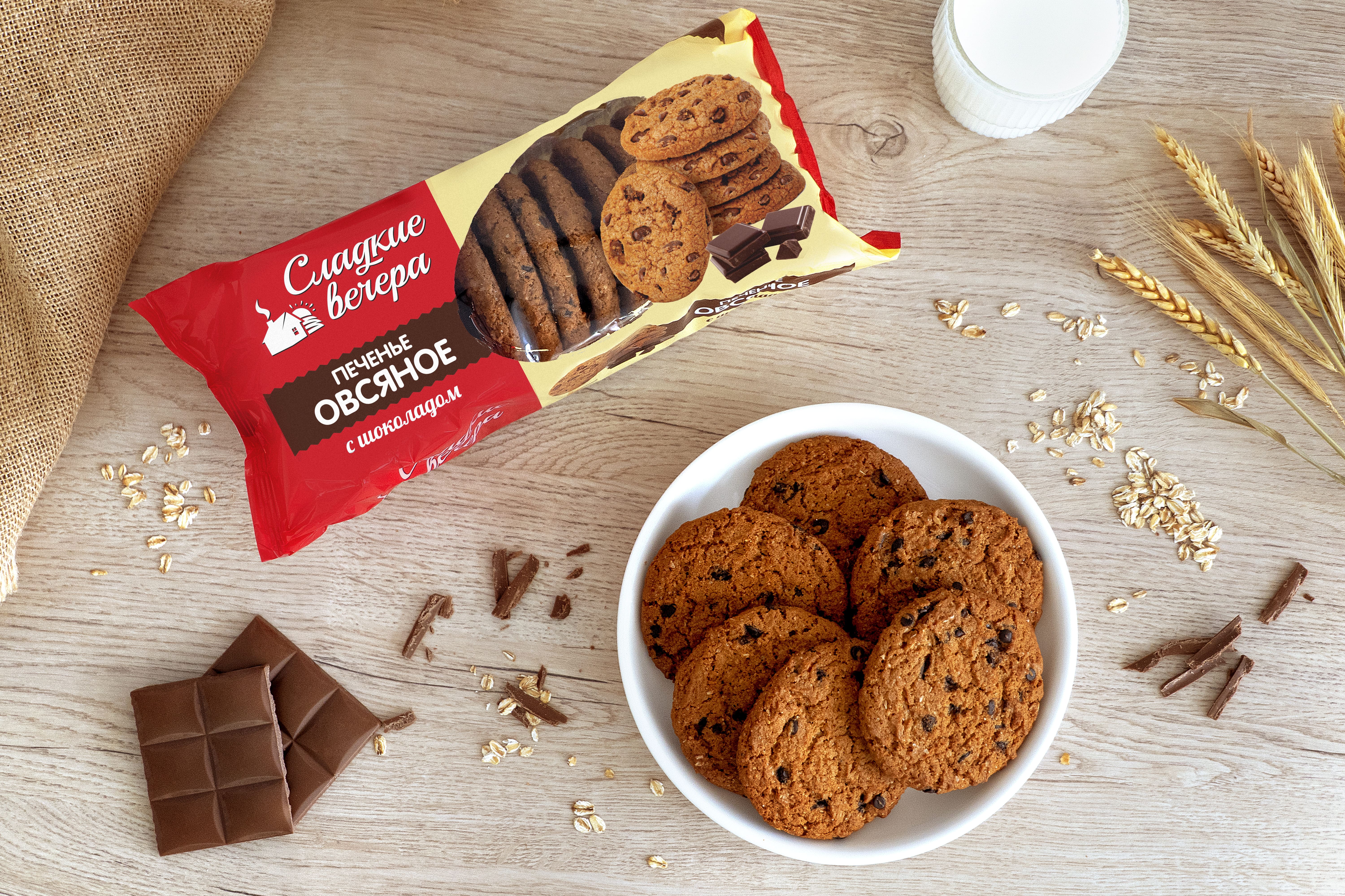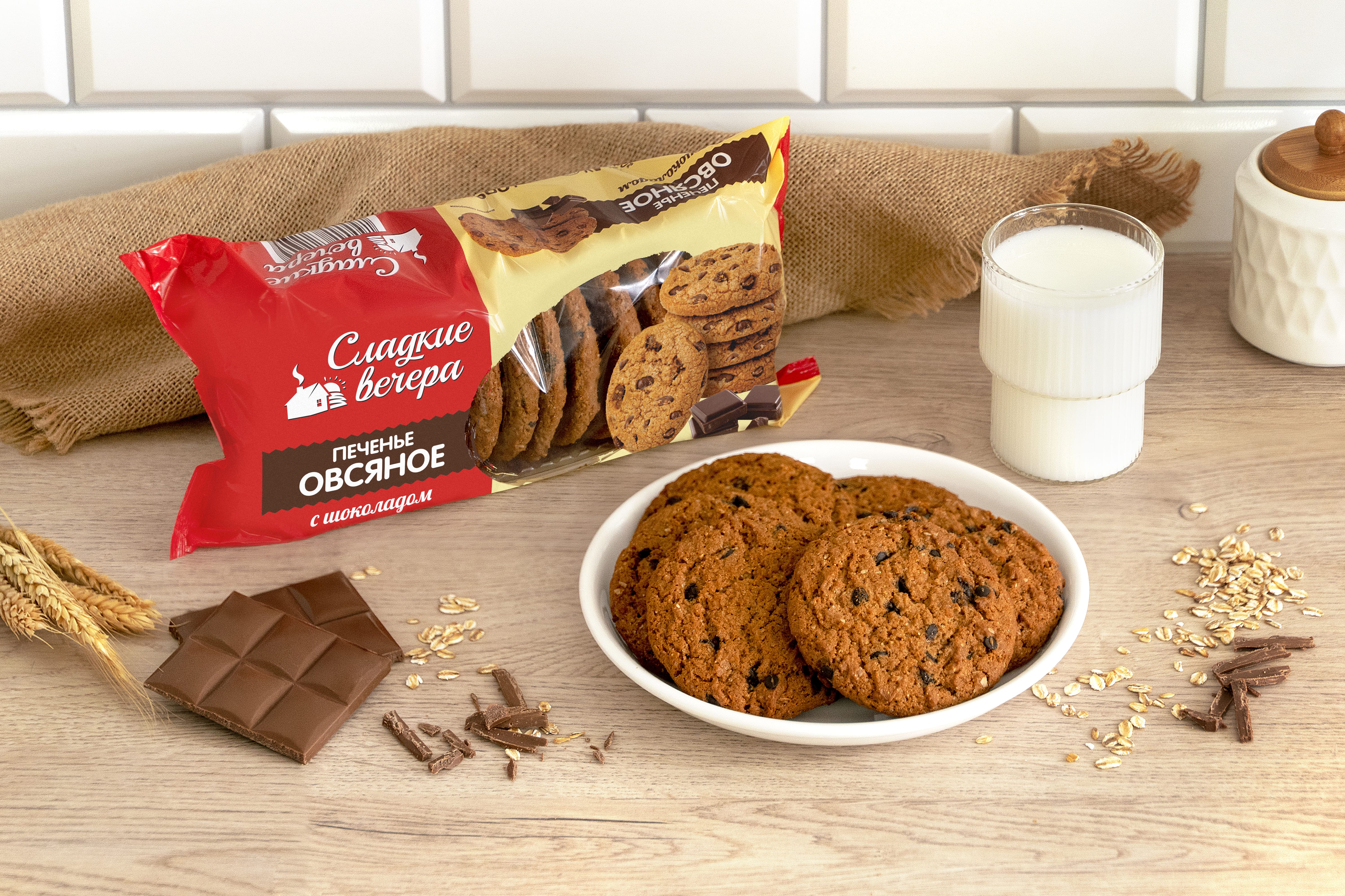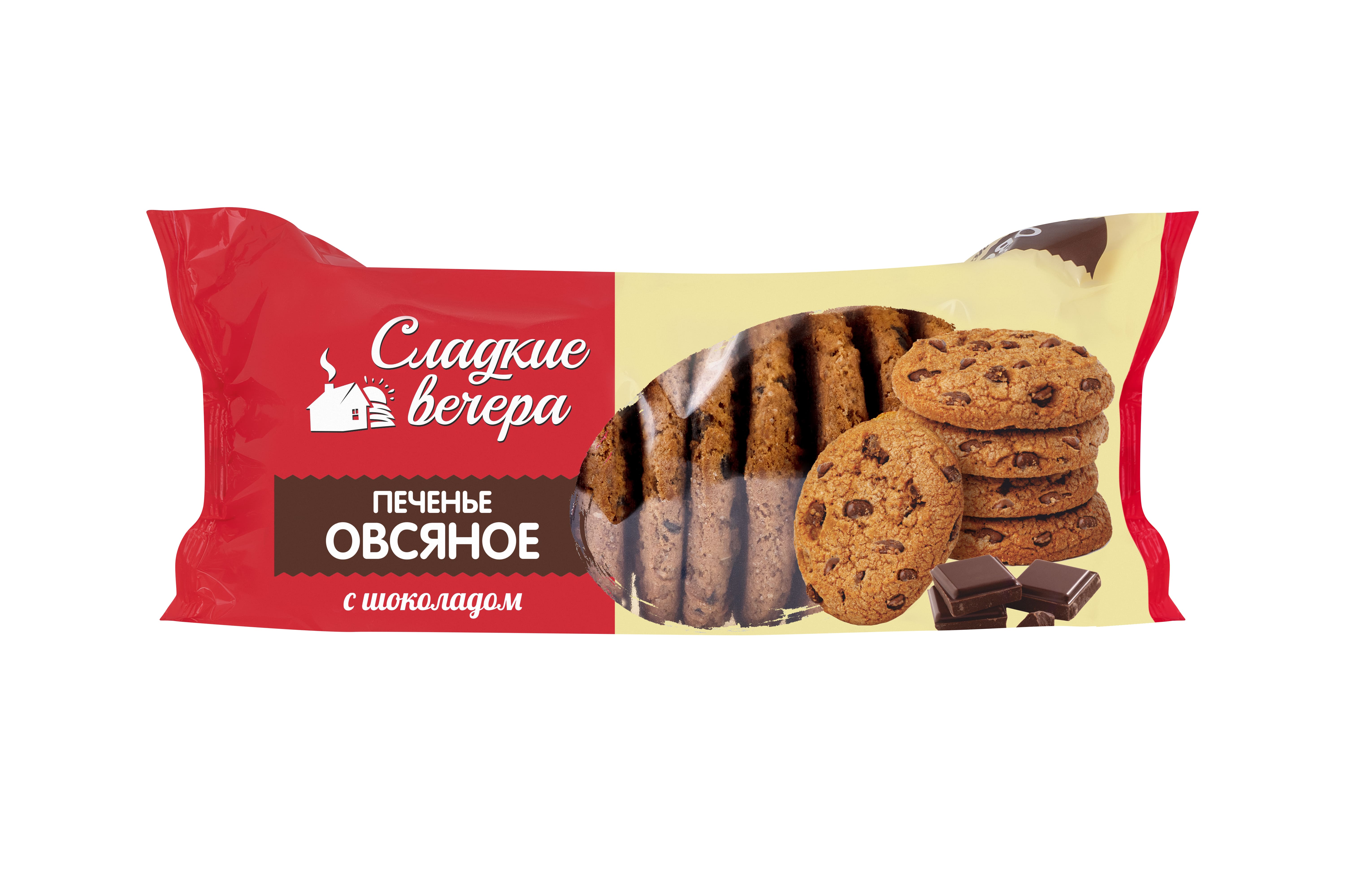 Печенье "Овсяное с шоколадом" ТМ "Сладкие вечера", 660 г. — мучное кондитерское изделие, изготовленное в строгом соответствии с ГОСТ 24901-2023 из пшеничной муки первого сорта и с кусочками шоколада (содержание какао 43,2%). Сладкий, в меру пряный вкус и хрустящие края натурального овсяного печенья “Сладкие вечера” обязательно понравится всем вашим членам семьи. “Сладкие вечера” – это лакомства для души, с которыми каждый ваш вечер будет сладким.