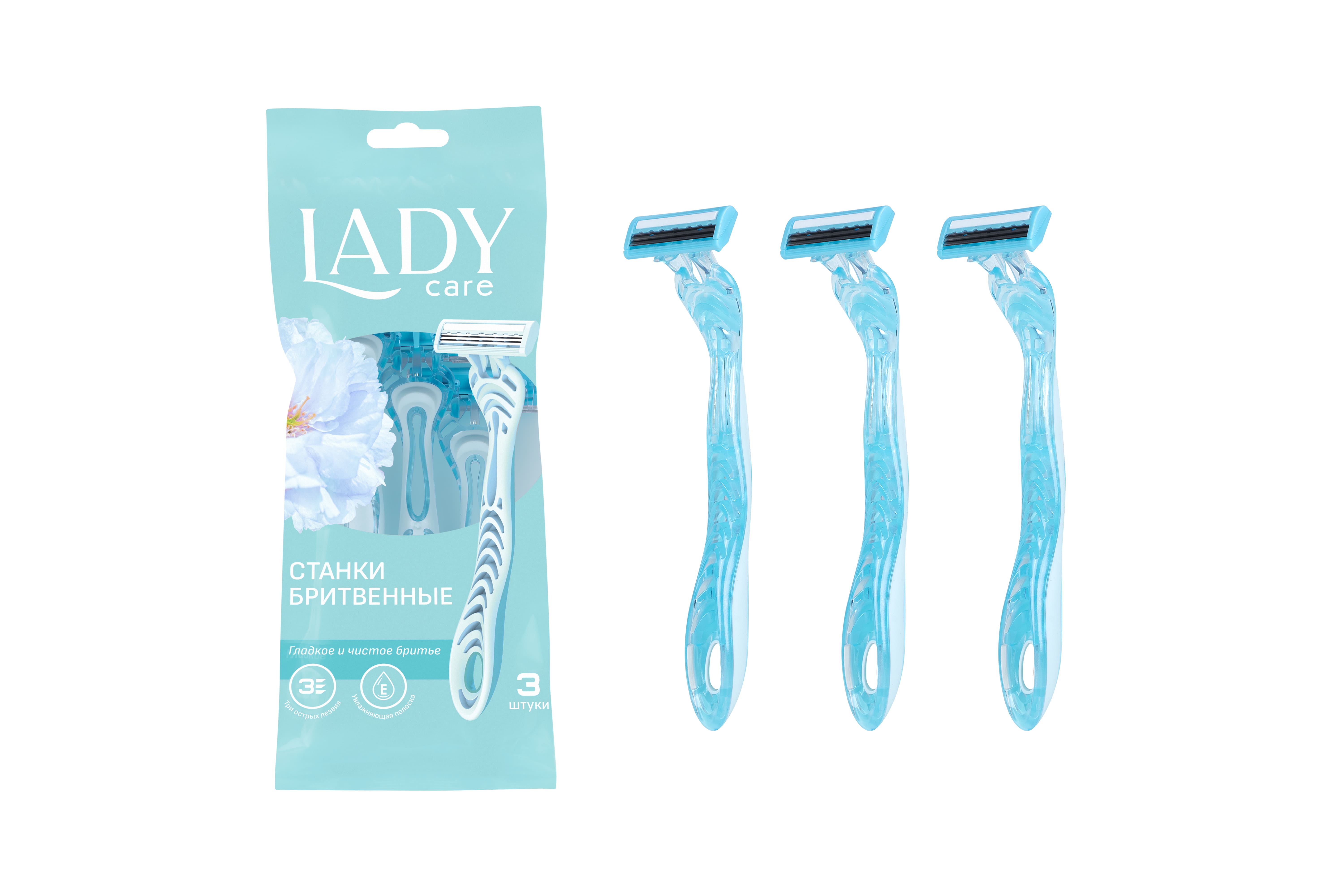 Станки бритвенные женские ТМ "Lady Care" — набор женских одноразовых бритвенных станков с увлажняющей полосой "LADY CARE", 3 лезвия, 3 шт. в упаковке. Специальная смазывающая полоска с экстрактом Алоэ вера и витамином Е увлажняет и успокаивает вашу кожу, подходит для чувствительной кожи. Станки для бритья одноразовые женские "LADY CARE" с увлажняющей полосой обеспечивают комфортное и гладкое бритье. Увлажняющая полоса помогает предотвратить раздражение кожи, делая процесс бритья более приятным. Каждый станок оснащен несколькими лезвиями для более эффективного удаления волос. Они идеально подходят для использования в домашних условиях и в поездках, так как не требуют дополнительного ухода. Два лезвия из высококачественной нержавеющей стали предназначены для бритья и удаления волос там, где это необходимо, без лишних сложностей. Удобная форма ручки обеспечивает надежный захват и легкость в использовании. Станки подходят для всех типов кожи и могут использоваться на различных участках тела. Lady Care — ты совершенна!