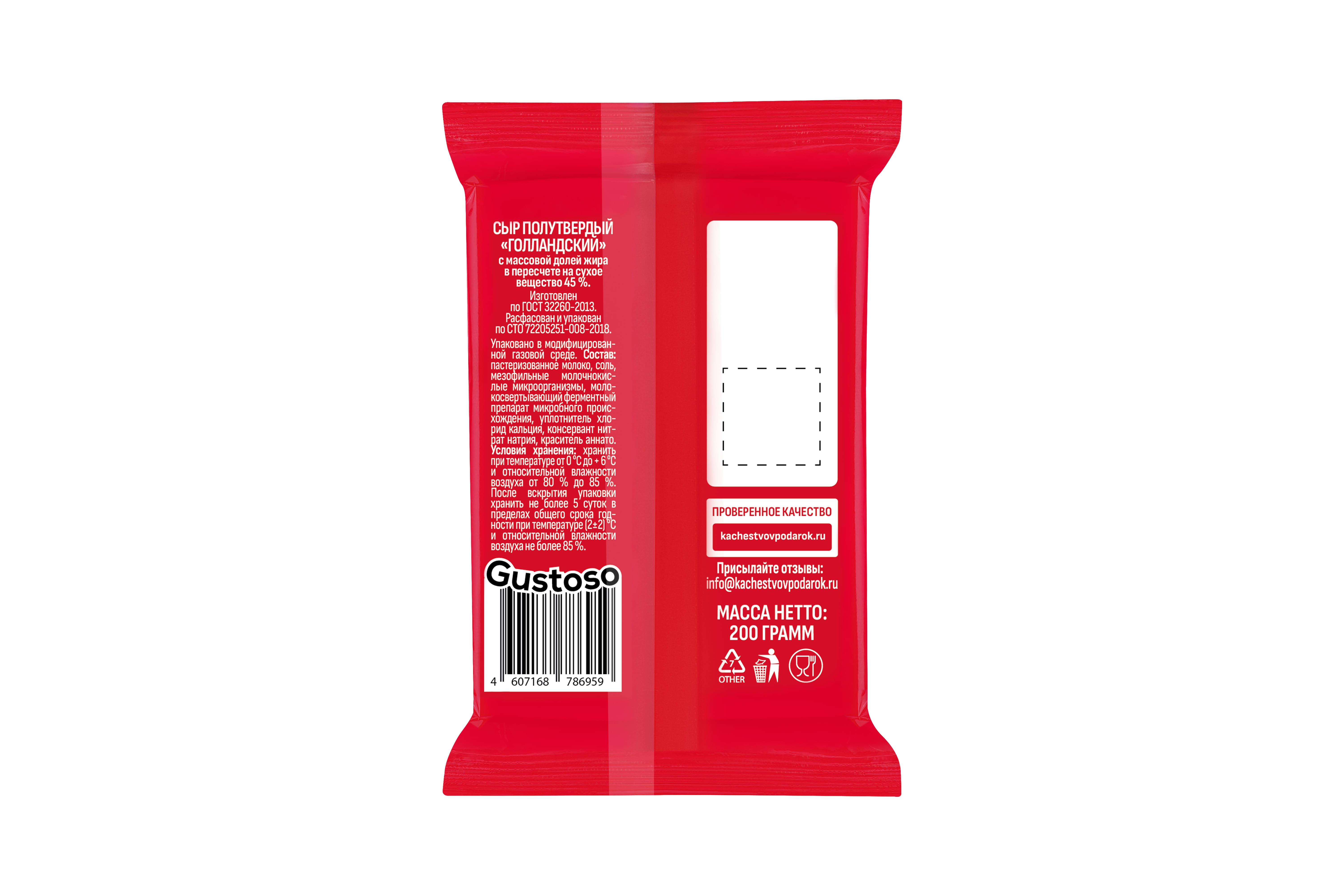 Изготовлен по ГОСТ 32260-2013"Сыры полутвердые"