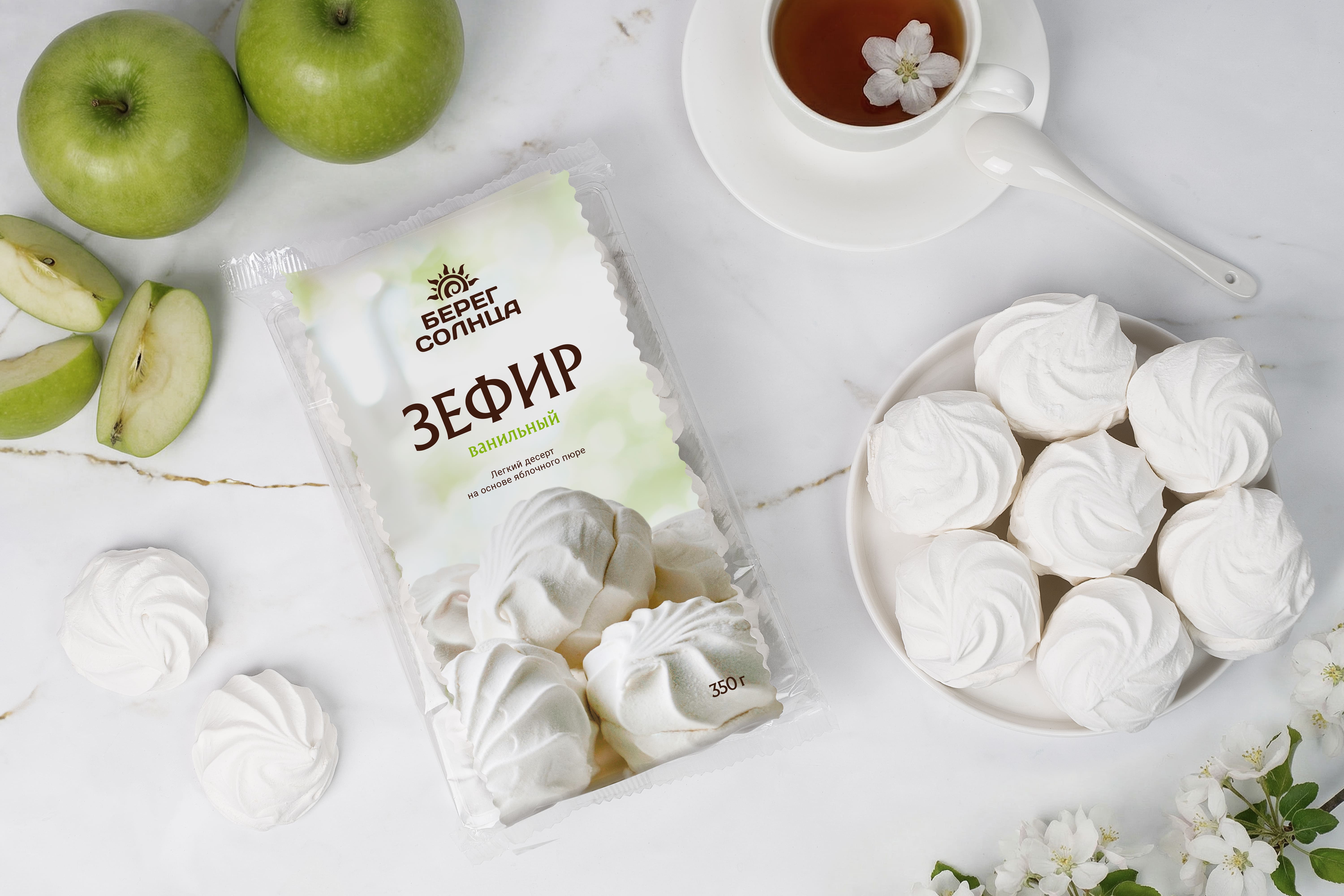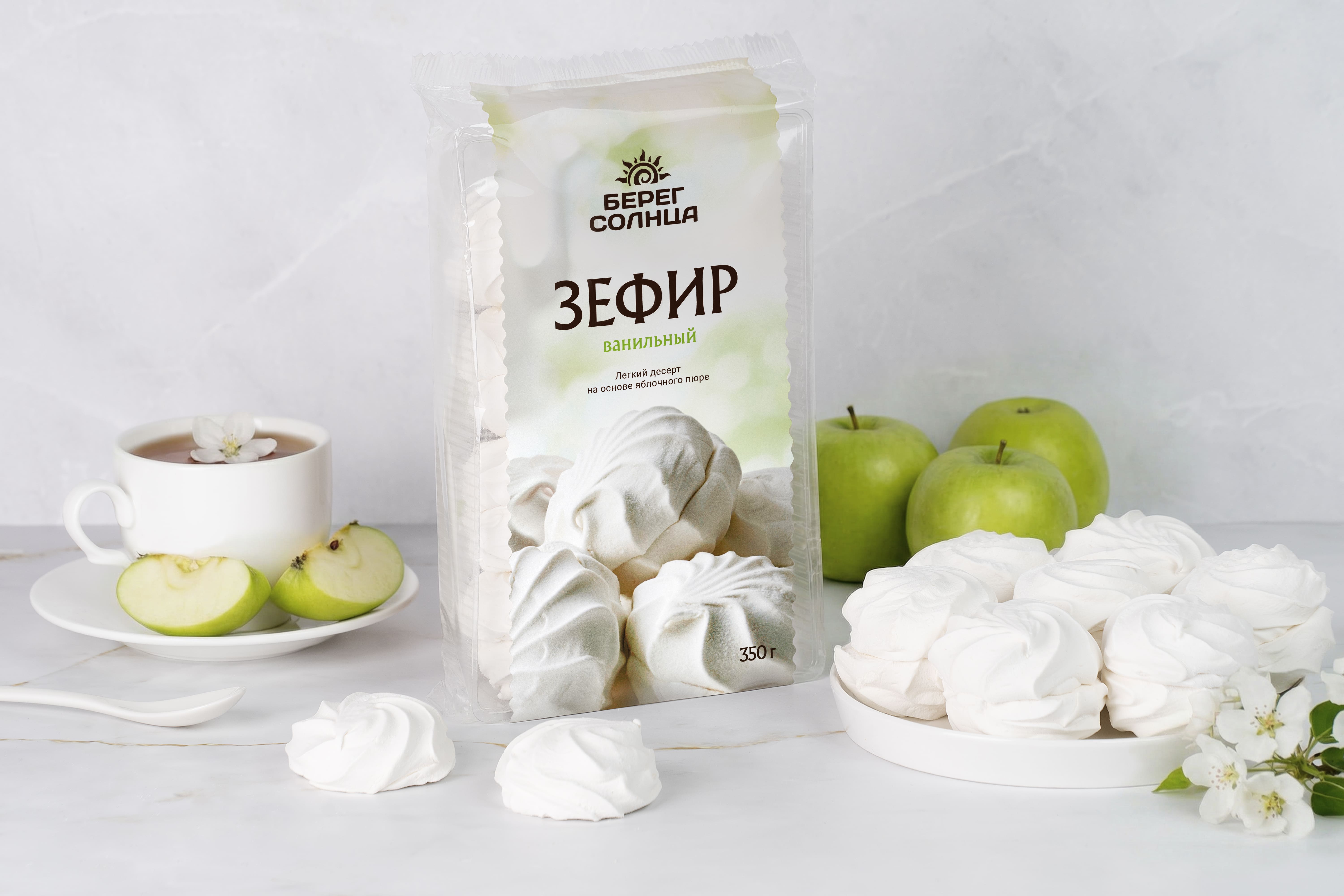 Зефир ванильный ТМ “Берег солнца”, 350 г – это легкое и воздушное изысканное лакомство, любимое всеми. Изготавливается по традиционной рецептуре на основе взбивания в пену нежнейшего яблочного пюре с натуральным яичным белком и полезным растительным веществом из яблок - пектином. Пектин стимулирует работу мозга, выводит лишний холестерин, улучшает состояние кожи, волос и ногтей. Зефир имеет насыщенный, но не приторный вкус, нежный ванильный аромат и плотную консистенцию. Он просто тает во рту! “Берег солнца” – высшее наслаждение!