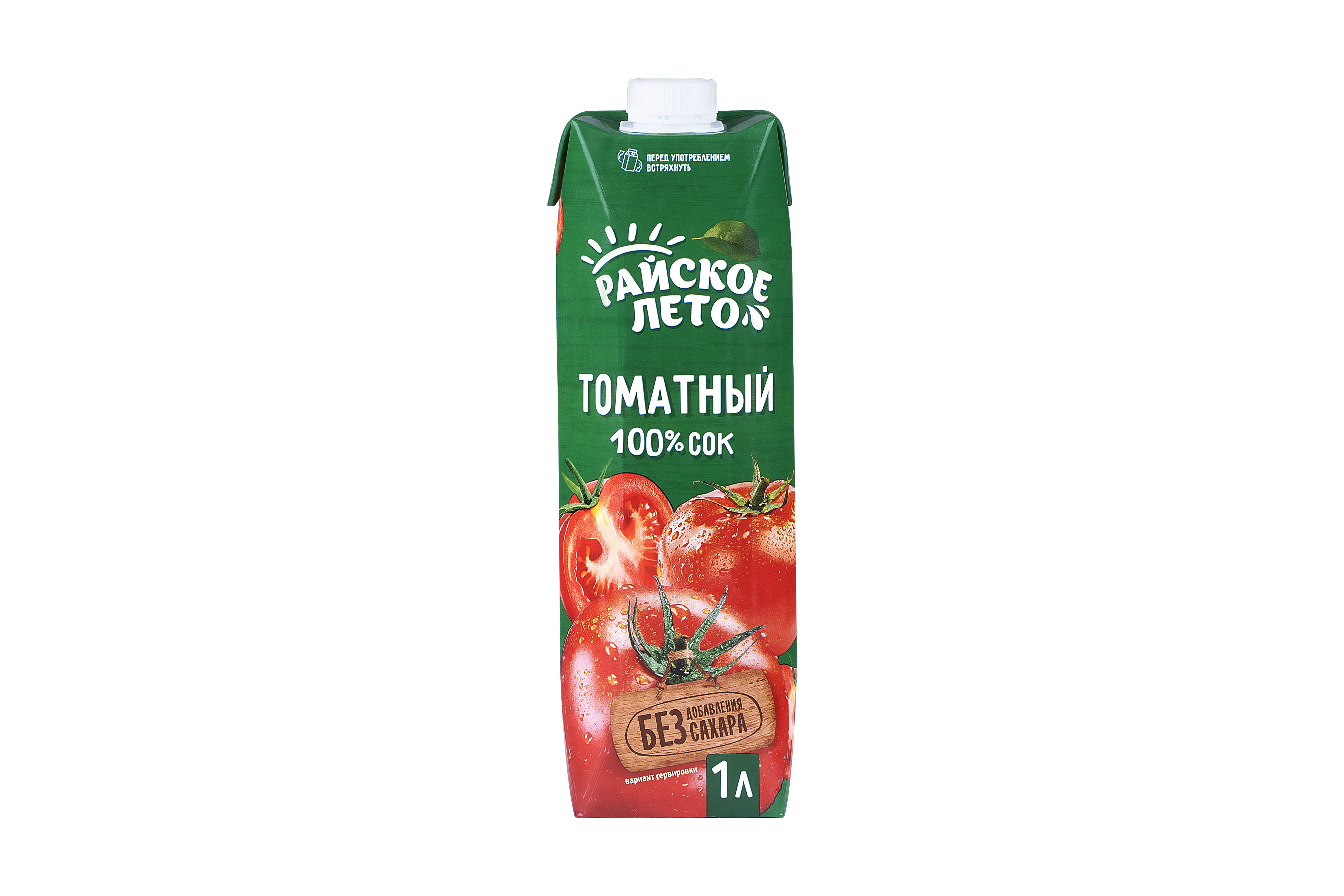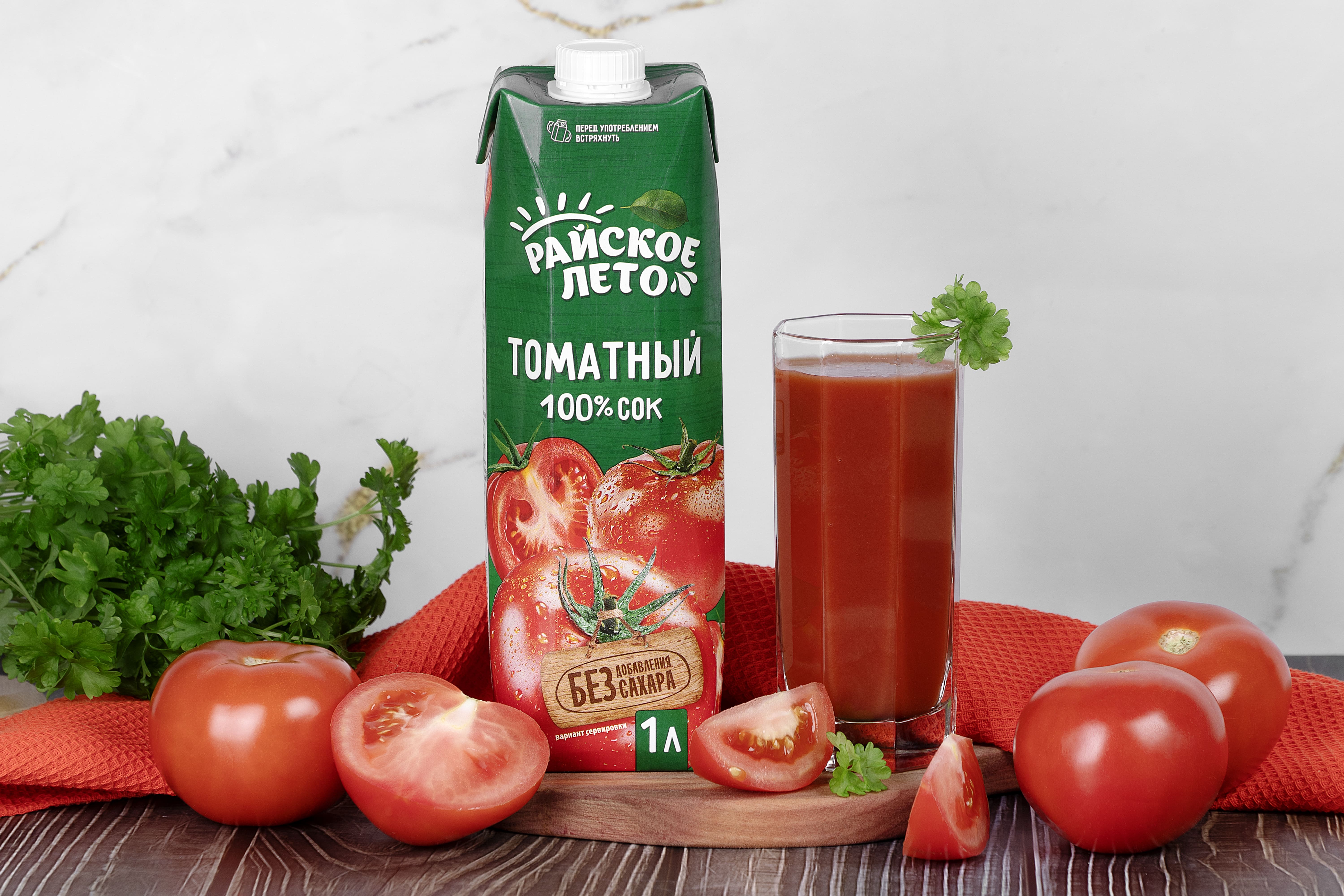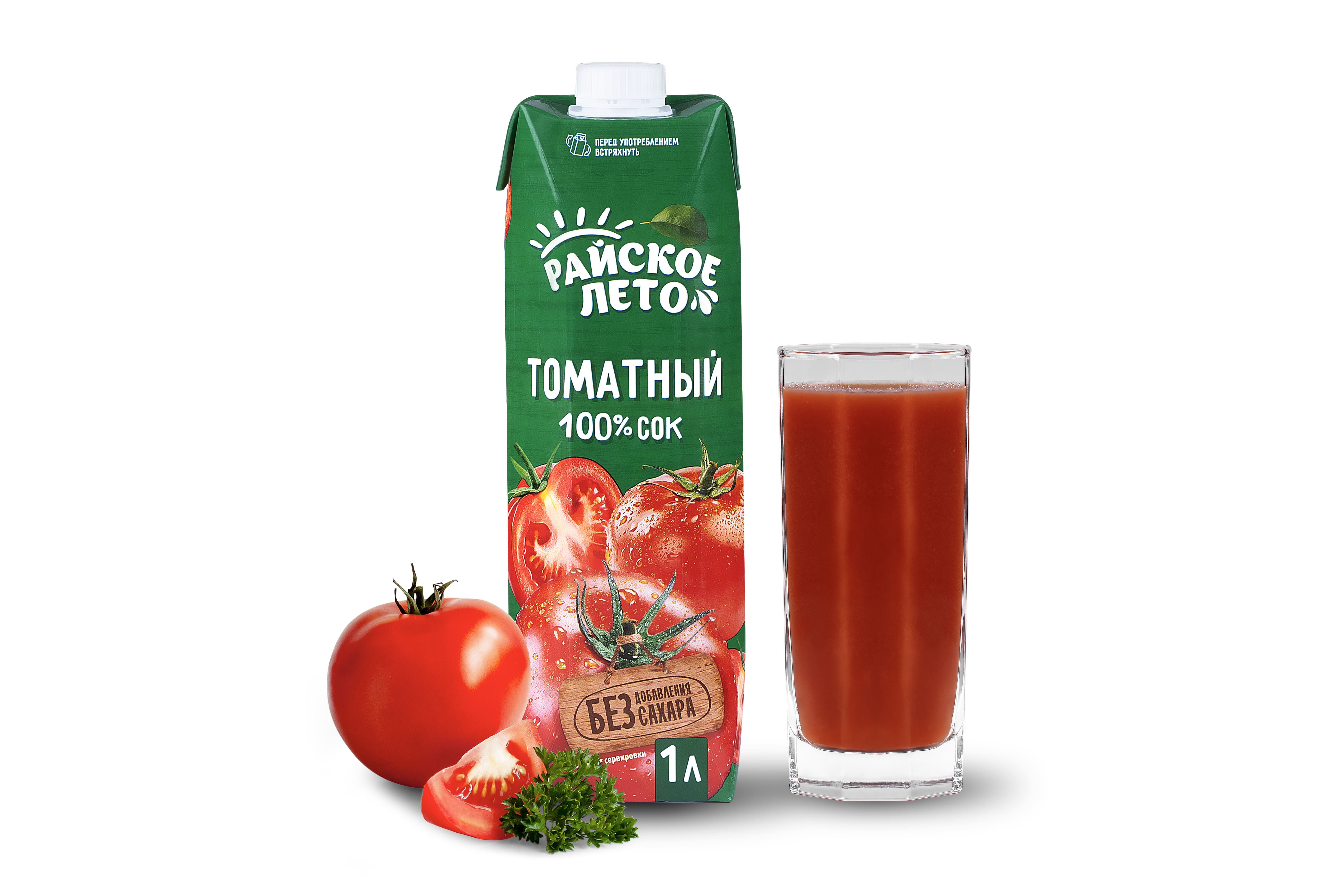 Сок томатный восстановленный “Райское лето” с мякотью, солью и сахаром имеет приятный насыщенный вкус и оптимальную консистенцию. Это готовый напиток, изготовленный из концентрированного пюре(пасты), не требующий добавления каких-либо ингредиентов. Сок содержит большое количество витаминов и микроэлементов и подходит для употребления взрослым и детям от 3-х лет школьного и дошкольного возраста.